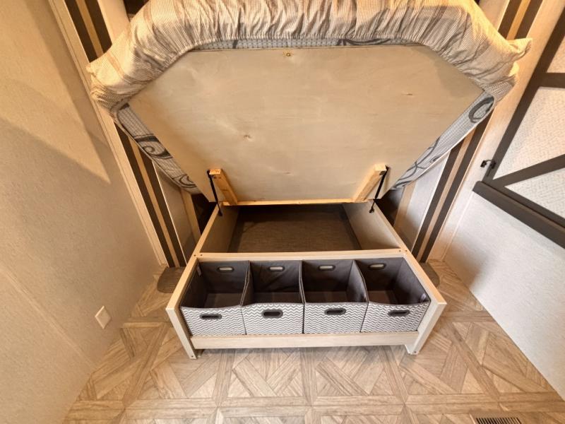 Have you been searching for the perfect travel trailer for your family? This Wildwood might just be the RV you have been looking for. Just imagine hiking, biking and playing horse shoes at your favorite campground to return to plenty of space for everything thanks to the triple slides, one in each room. The kiddos will surely head to the rear private bunkhouse to claim a bunk bed while you take a nap on the custom king bed in the front bedroom. You might even put a load of clothes in the washer and dryer if you chose to add that option. You can then make dinner on the outside kitchen or in the full kitchen inside. Everyone can play games or relax on the Versa Lounge before heading outside to see the stars. Check it out!