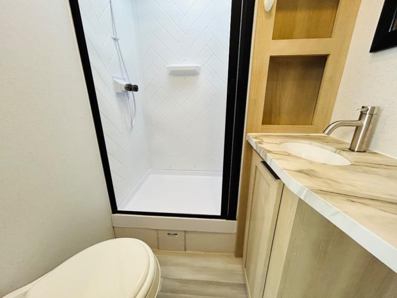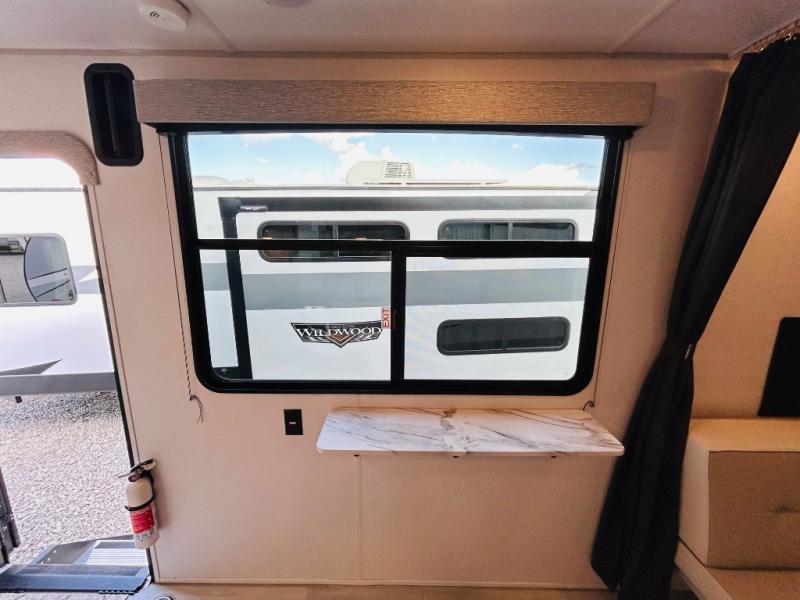 The Forest River Wildwood FSX travel trailer and toy haulers are easy to tow and easy to love, so come take a look! With each model you'll appreciate the 20K BTU furnace and 13,500 BTU A/C to keep you comfortable year around, and the large windows will make the whole unit seem bright and open. The EZ entrance includes an XL folding grab assist handle, and the power awning with LED lights provide an outdoor living space you are sure to love. The lightweight Wildwood FSX travel trailers and toy haulers are your ticket to the great outdoors. Choose yours today!