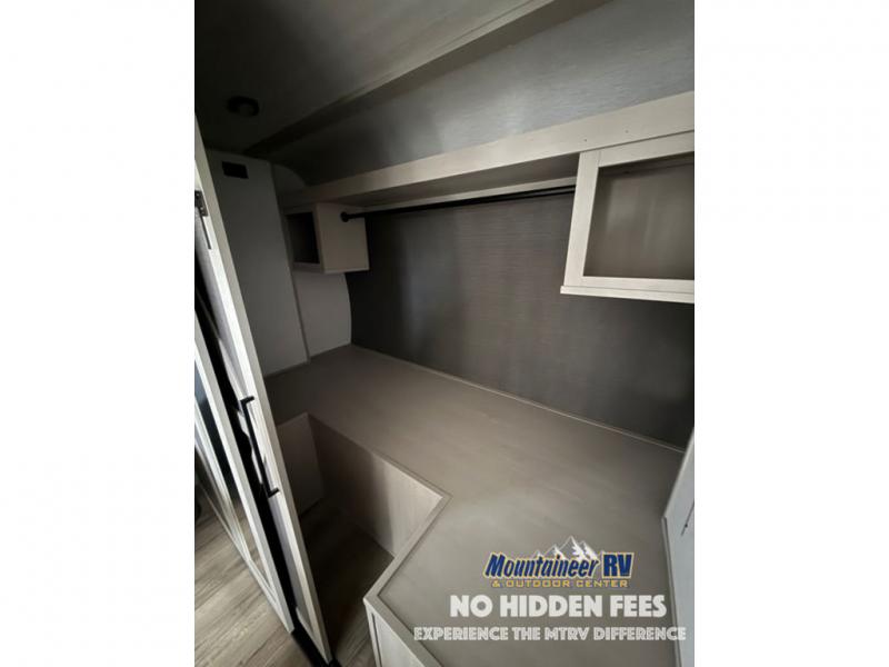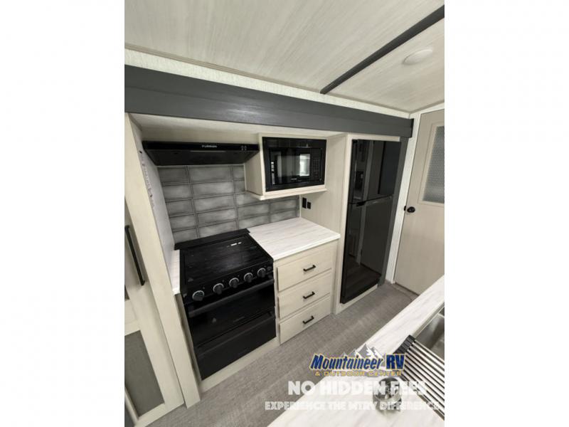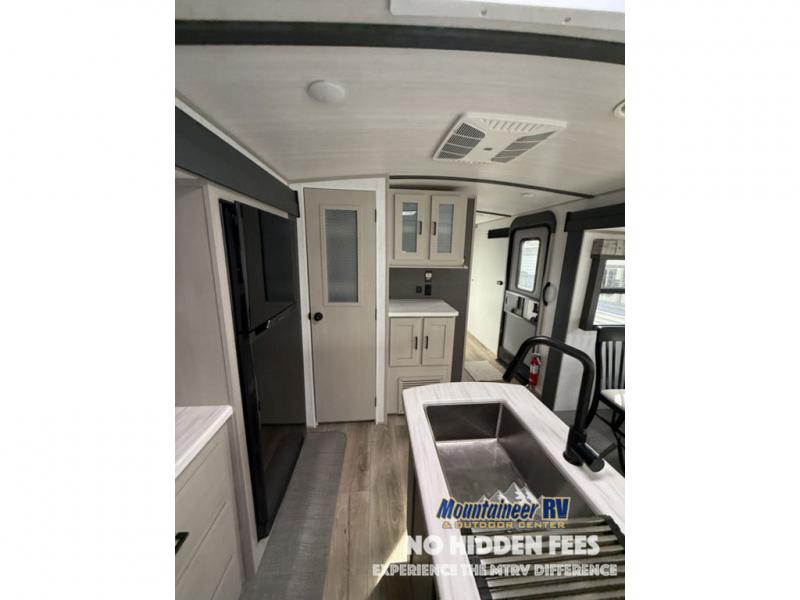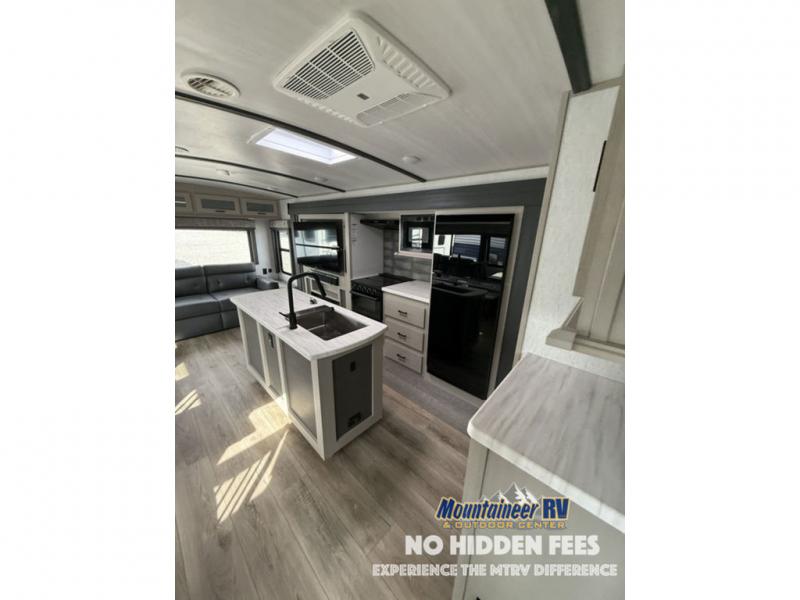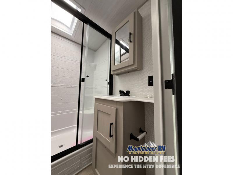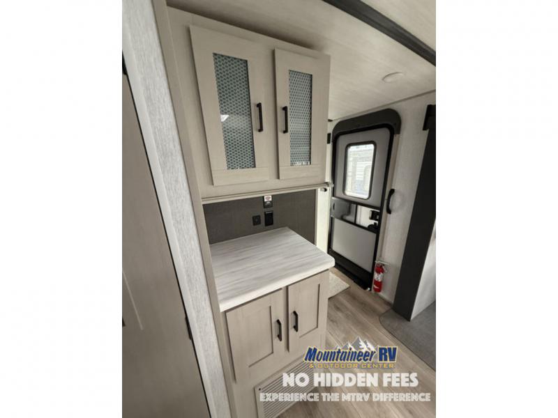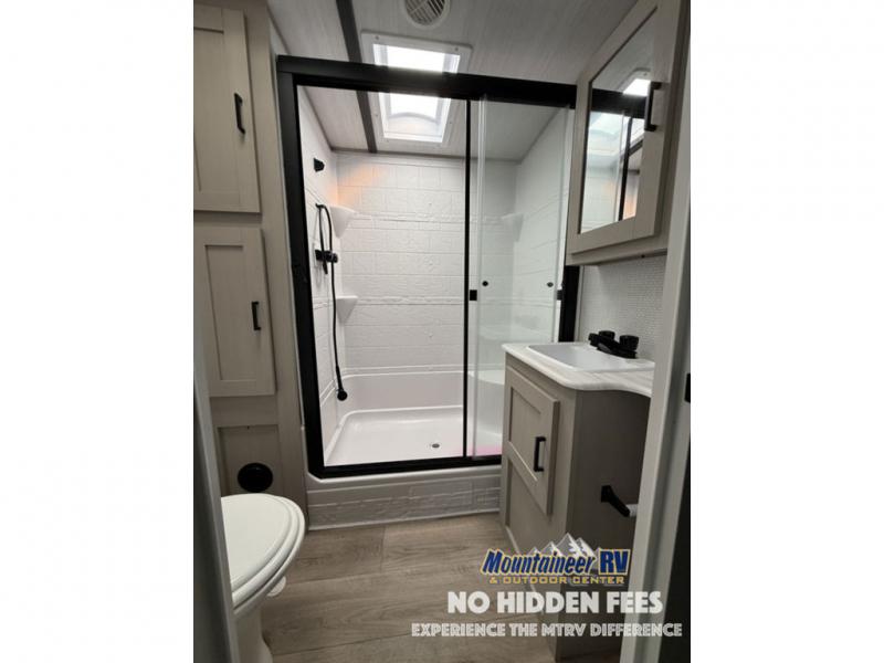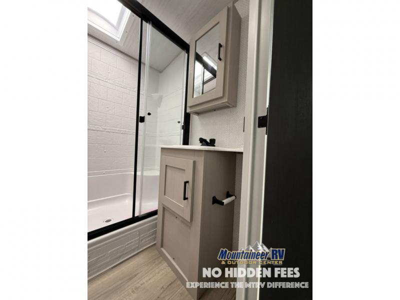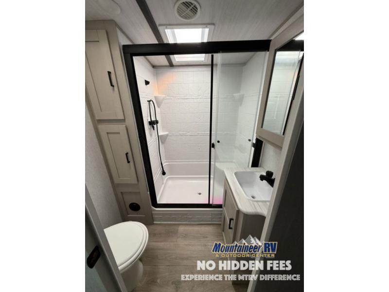 With any Wildwood Heritage Glen travel trailer and fifth wheel by Forest River, the quality construction, attention to detail and design along with a bright and welcoming interior allows you to relax in comfort with conveniences while exploring outdoors. The European Oak colored horizontal plank linoleum flooring is unique, beautiful and durable, and the Saddle colored wood cabinetry with matte black cabinet hardware on the cabinet doors is stylish and beautiful. The heated and enclosed underbelly plus 12V heat pads will help protect your unit from the elements. More features that provide convenience include the power stabilizer jacks, the extra large pass-through storage, and the central switch center plus the back-up camera prep and roof mounted solar panel prep give you choices. There are many more features included whether you choose a travel trailer or fifth wheel!