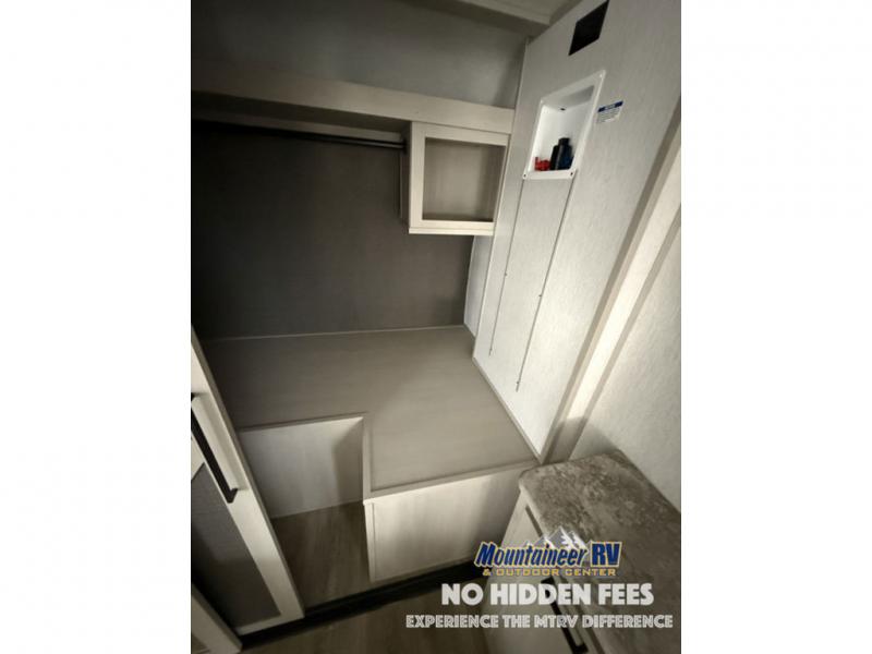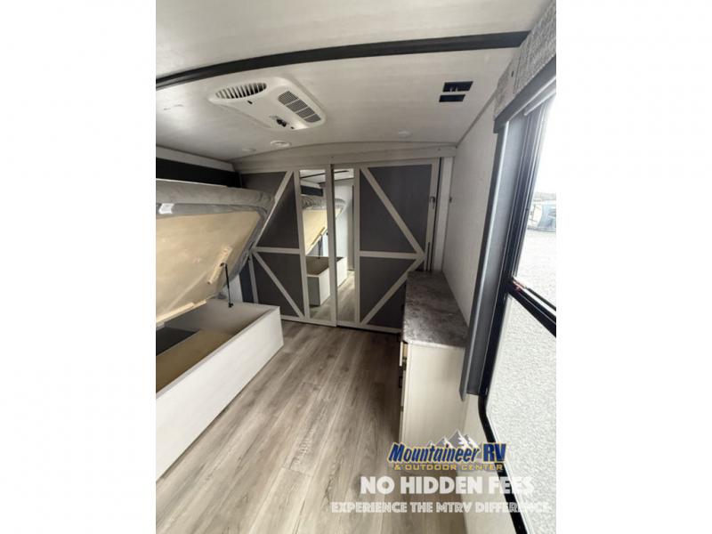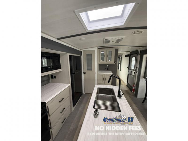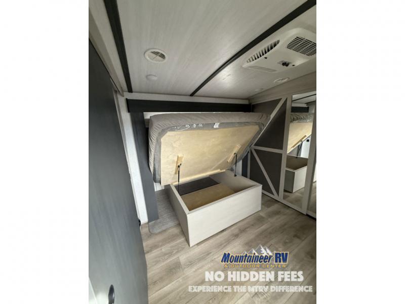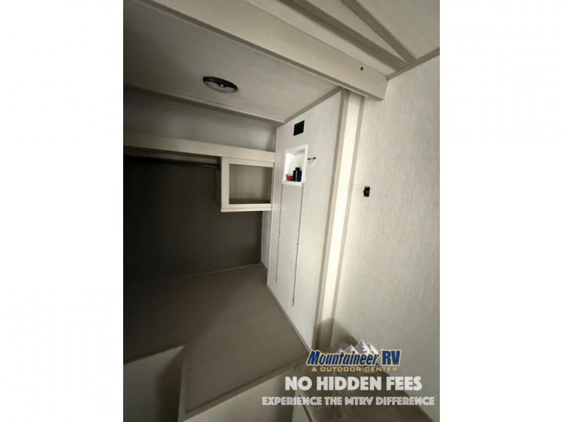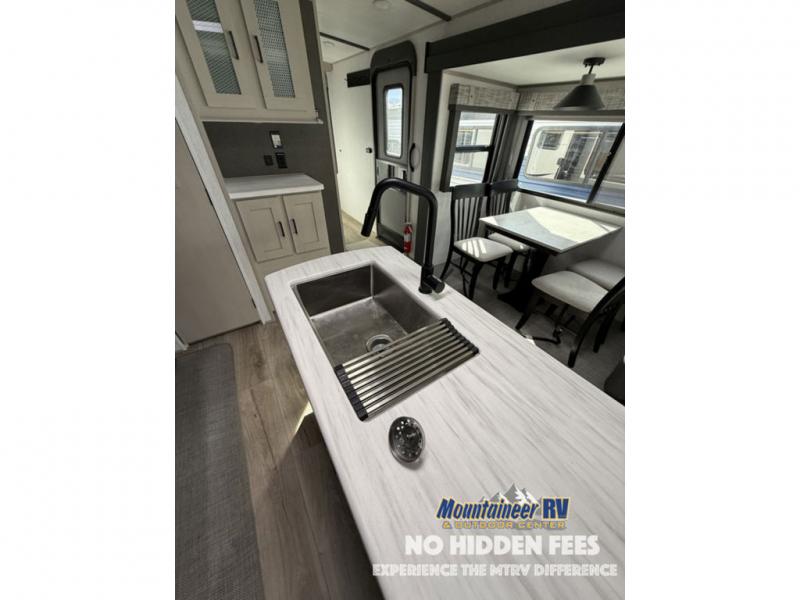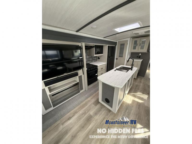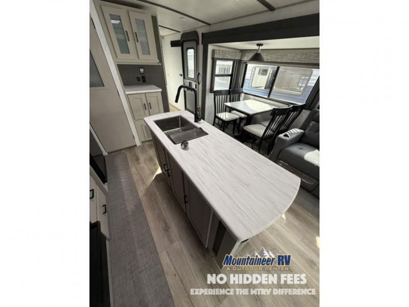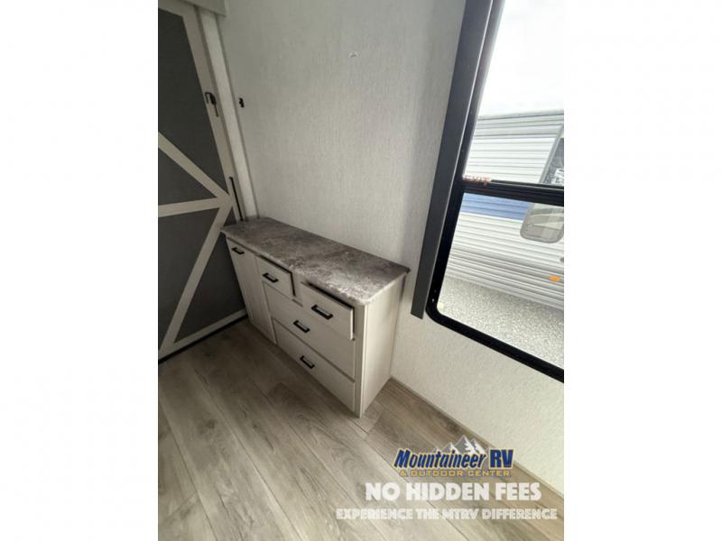 With any Wildwood Heritage Glen travel trailer and fifth wheel by Forest River, the quality construction, attention to detail and design along with a bright and welcoming interior allows you to relax in comfort with conveniences while exploring outdoors. The European Oak colored horizontal plank linoleum flooring is unique, beautiful and durable, and the Saddle colored wood cabinetry with matte black cabinet hardware on the cabinet doors is stylish and beautiful. The heated and enclosed underbelly plus 12V heat pads will help protect your unit from the elements. More features that provide convenience include the power stabilizer jacks, the extra large pass-through storage, and the central switch center plus the back-up camera prep and roof mounted solar panel prep give you choices. There are many more features included whether you choose a travel trailer or fifth wheel!