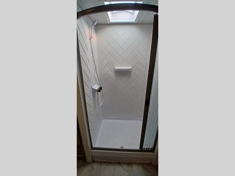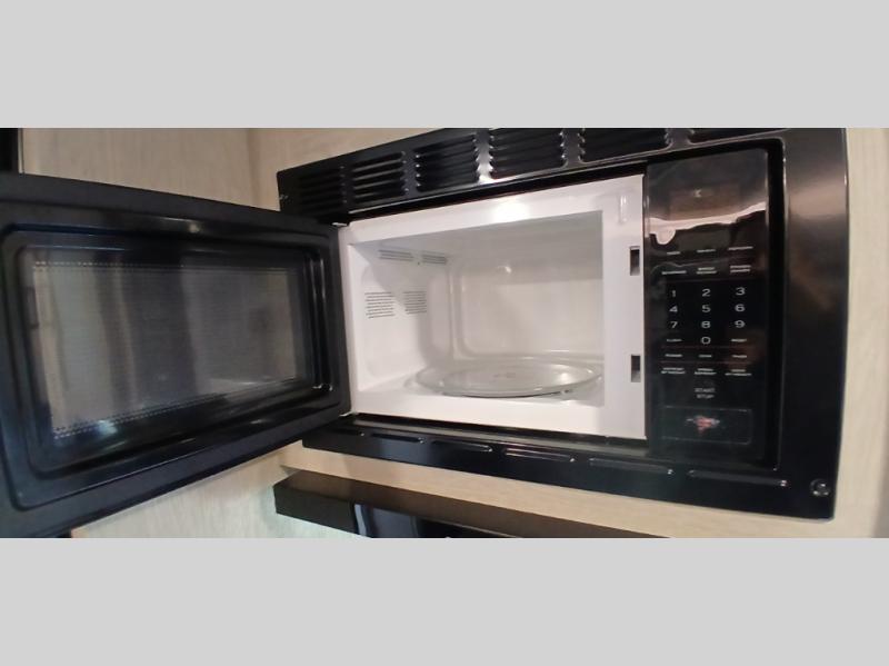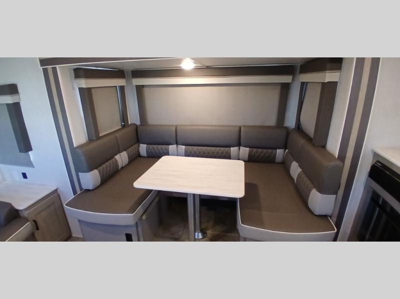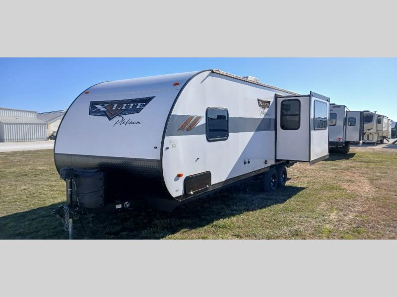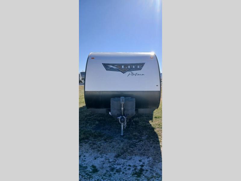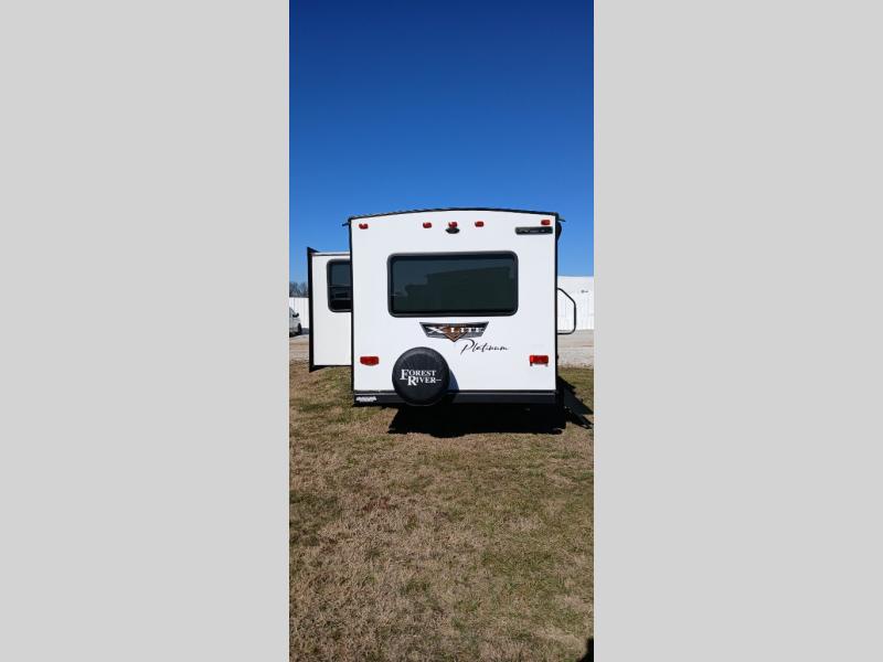 Whether it's a family vacation or a romantic getaway with your significant other, this Wildwood X-Lite travel trailer will make it the very best! The master bedroom has many places to store items with the walk-in closet and bedside closets plus nightstands, and the walk-through bath also provides additional storage with a linen closet and vanity. The kitchen has modern amenities, like an 11-cubic foot refrigerator, a microwave, and a three-burner cooktop, plus the U-shaped dinette has panoramic windows that surround it to create an inviting space to spend your time. And you will enjoy the protection from the 16' power awning and the sturdy Step Above steps at the entry.
