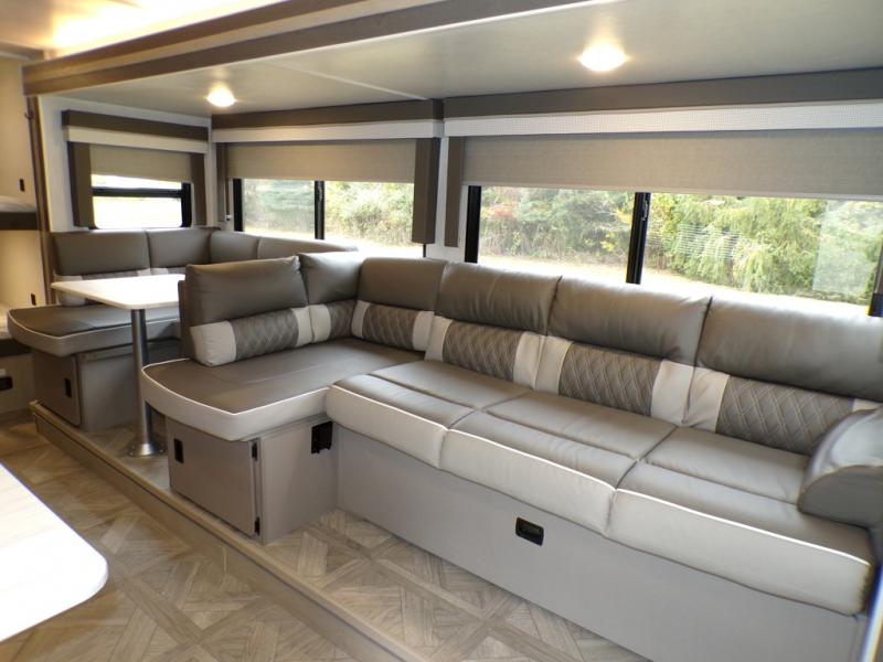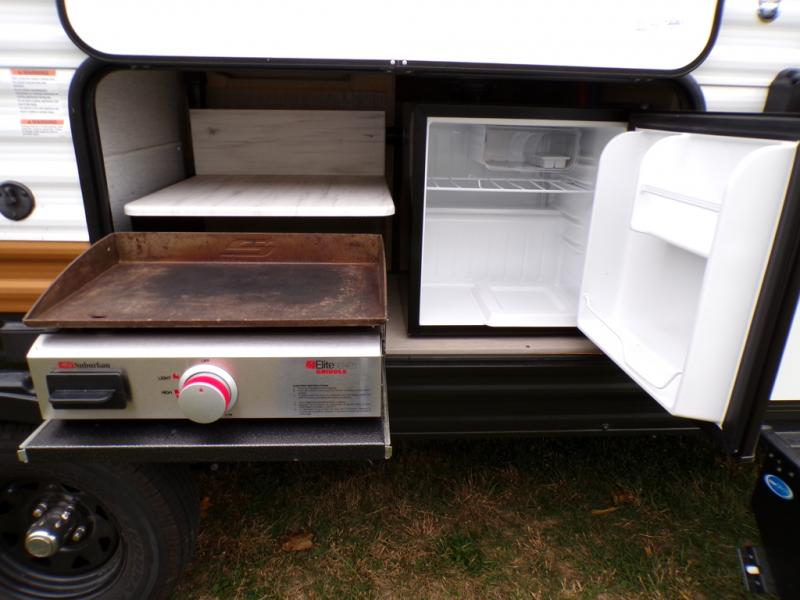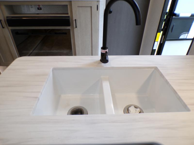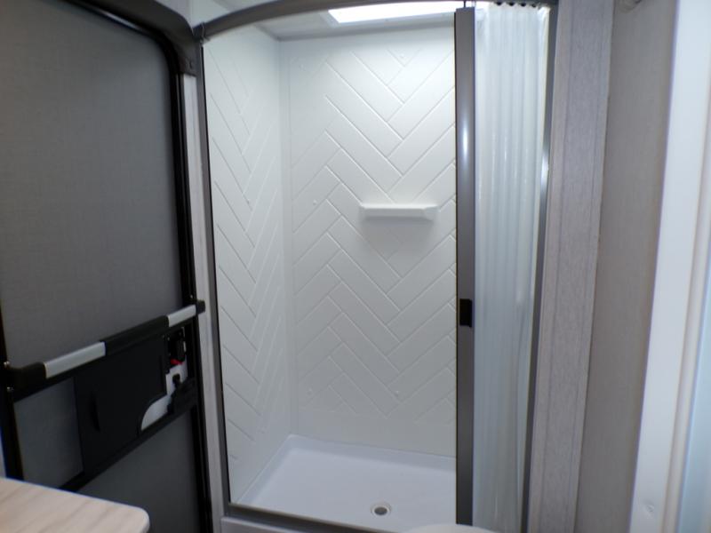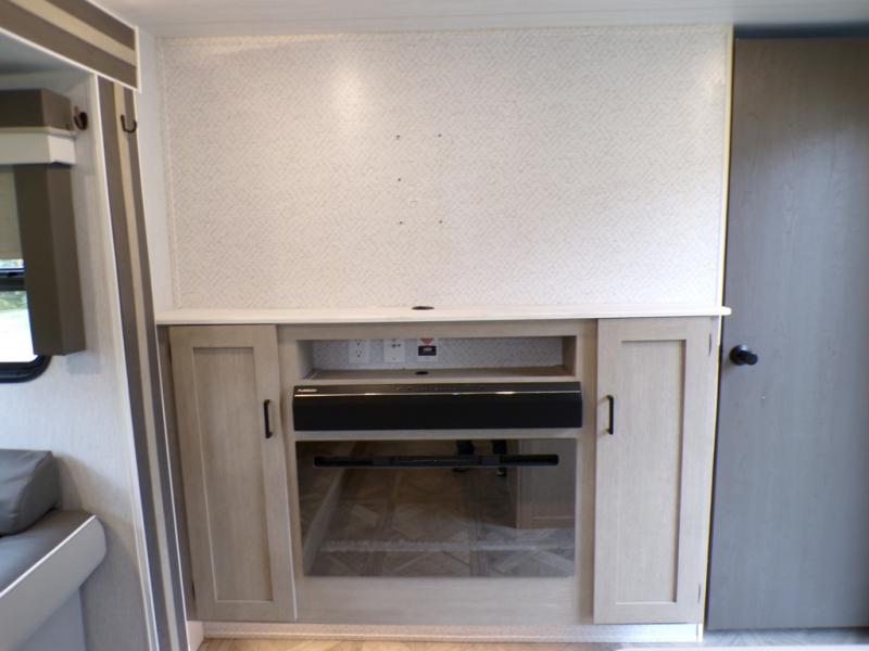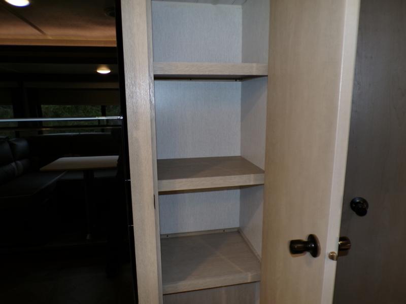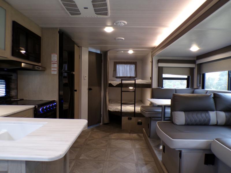 If you need a trailer that will enhance your family getaways, this Wildwood X-Lite travel trailer is it! Because of the double-size bunks in the back and the custom king bed in the front private bedroom, your family can stretch out and sleep comfortably, and the Versa Lounge, which is made up of a U-shaped dinette and sofa, can also transform into extra sleeping space if needed. The whole family will enjoy how accessible the full bathroom is because it contains both an interior and exterior entry door, and the entertainment center with fireplace is certainly going to enrich your time spent indoors. You might even want to add the optional exterior camp kitchen!