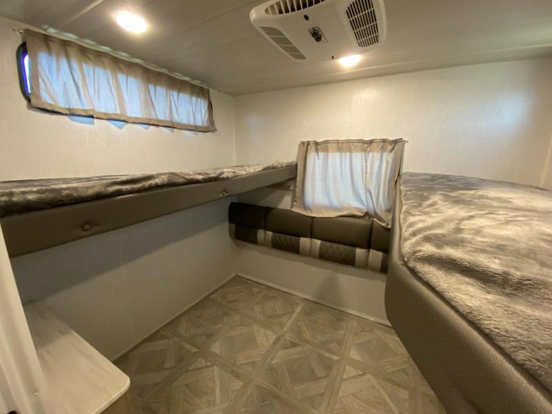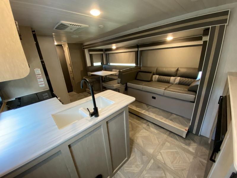 You can do so much with this Wildwood X-Lite travel trailer because it has a Versa Lounge in the main living area, and Versa-bunks plus a Versa-queen sofa in the private bunkhouse! These pieces of furniture provide you with versatility while you travel so that your trailer can best fit your lifestyle. The kitchen is completely outfitted with excellent tools, like a three-burner cooktop and microwave to make all of your meals delicious, and the full bathroom offers you a fiberglass shower surround and a residential vanity with a shower caddy for the most convenience. The exterior portion of this trailer is complete with a 16' power awning and exterior speakers, and it is even more accommodating with the outdoor kitchen.
