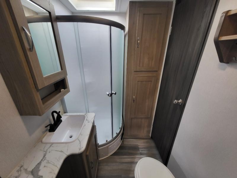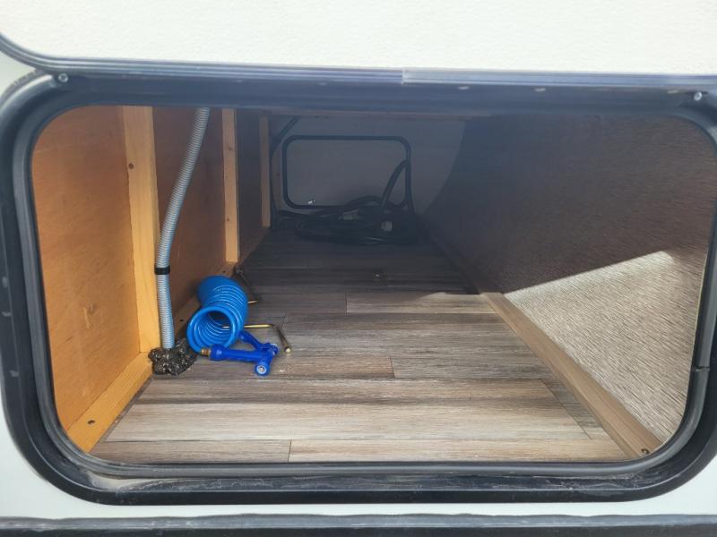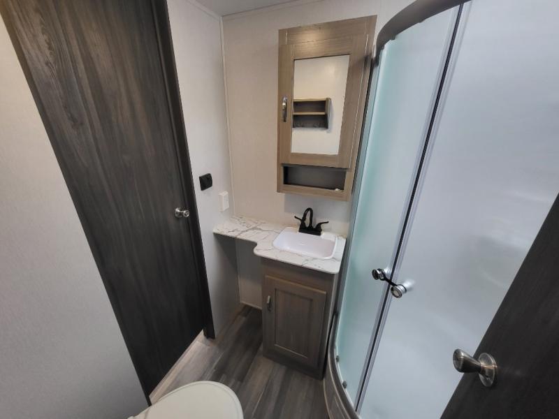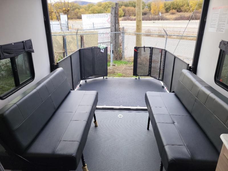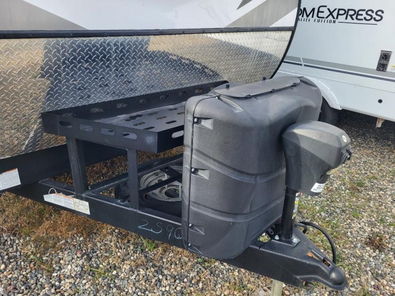Get ready for a weekend of trail riding with buddies in this toy hauler! You'll have a total of 15' 9" of garage space to load up your dirt bikes or kayaks, and there are two roll-over sofas with a dinette table so you can eat lunch before heading out. The outdoor spray port will allow you to wash off the mud from your tires when you return, and you can choose the optional 30 gallon fuel station so you'll be ready to go the next day. This model also includes a dual entry bath that will create a front master bedroom you are sure to love. Here, you'll sleep soundly on the king bed, and you can keep your clothes wrinkle-free in the dual shirt closets!