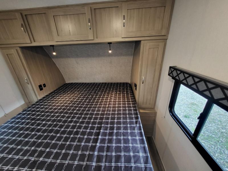 Each Work and Play toy hauler by Forest River is built tough with a mega rail powder coated chassis, a one-piece Tufflex PVC roof membrane, and a fiberglass front cap with rock guard. Towing is made hassle-free with the heavy duty Dexter axles with Nev-R-Adjust brakes and nitrogen filled tires. You will find many convenient features, such as a Winegard Air 360 and TV antenna, an outside spray port, and magnetic compartment door catches to store your riding gear. These toy haulers also include shaker style cabinets and doors, a residential bedspread, multiple USB ports for all your electronics, and many more amenities!