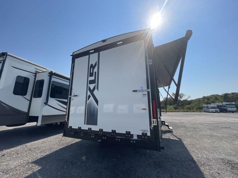 With the XLR Hyper Lite toy hauler travel trailer by Forest River, there is a wider interior with a 74" width even when the slides are retracted in so you can enjoy modern decor, at-home amenities and custom styling. The garages are spacious and include 5,000 lb. cargo tie downs that are anchored to steel plates, an insulated floor, a black rear privacy screen, a ramp patio cable kit for outdoor fun above ground, and Alumi-tread rear entry steps to mention a few highlights. More standout features include MORryde CRE3000 premium suspension that smooths out even the toughest of roads, heavy-duty Dexter axles offering the best in class carrying capacities, and the XLR fully enclosed "Body Armor" underbelly that is insulated and uses a panel system for ease of access. So when you want to play hard, choose an XLR Hyper Lite that offers upgraded features, quality construction, and allows you the control of venturing on or off road!