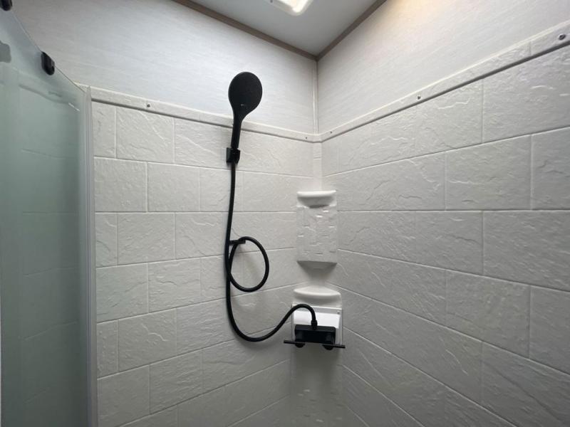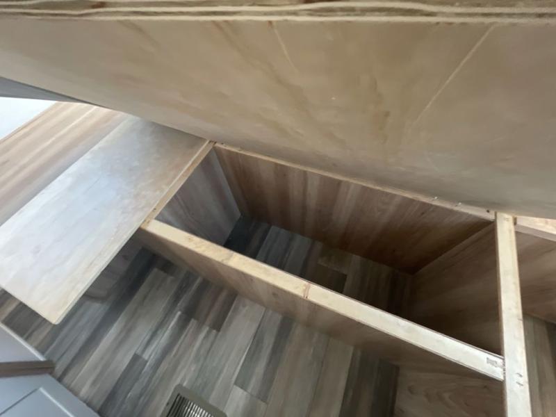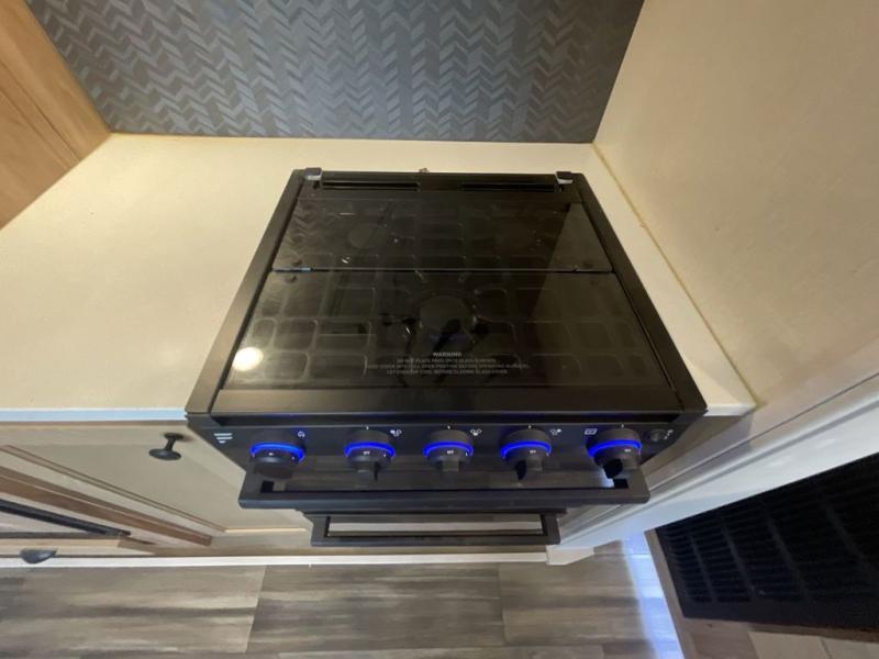 As you seek adventure with your toys, you can also require comfort in your own bedroom at the campsite! The front bedroom provides your own walk-around queen bed with dual wardrobes and windows with great views and natural lighting, plus access to the full bathroom with a radius shower. The main living and kitchen area offers two lounge chairs with end table in between to place your drinks on, dual sofas with dinettes in the rear to dine at, and a slide out with kitchen amenities plus there is extra counter space and a stainless steel single basin sink plus storage for the cook. You will love the hardwood cabinet doors, the grate style sink cover/drying rack, and the metropolitan grey countertops. And the furniture doubles as sleeping space, plus the electric bunk gives you room for two more.
