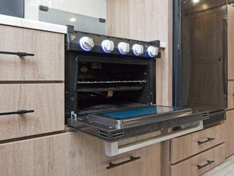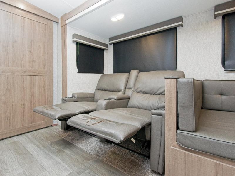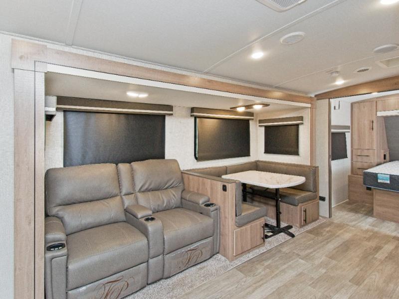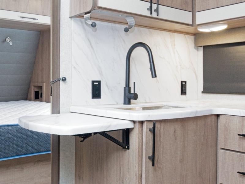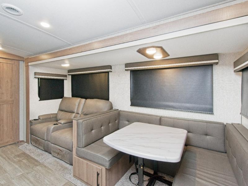 - Tri-fold sofa and U-shaped dinette for lounging or extra sleeping space