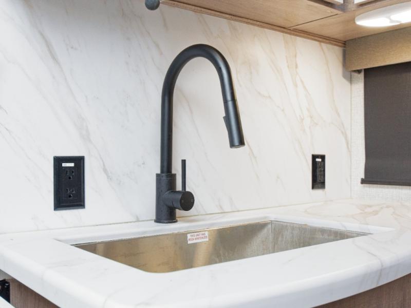 - Heated and enclosed underbelly with suspended tanks for extended season camping
