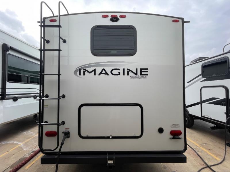 Just imagine leaving the world behind and secluding yourself away with your favorite people in your Grand Design Imagine travel trailer! The Imagine has been designed to enjoy extended season camping and includes a high-capacity furnace, a heated and enclosed underbelly with suspended tanks, a designated heat duct to the subfloor, and a high-density roof insulation with attic vent. You'll have maximum head room on the interior with 81" radius ceilings, and large panoramic windows to let in natural lighting. The exclusive drop-frame pass-through storage compartment is going to allow you to bring along lots of equipment, and the universal docking station is an all-in-one location for utilities and hook-ups. You'll also have industry-leading tank capacities so that you can fill and empty your tanks less often.