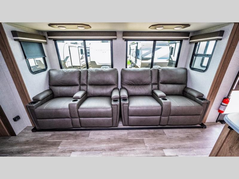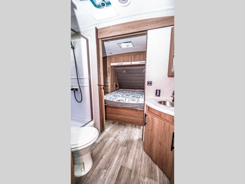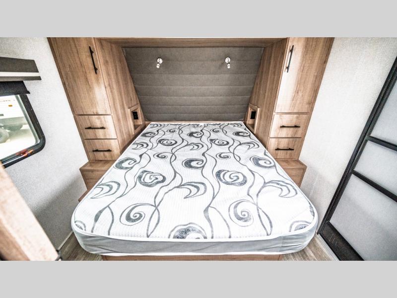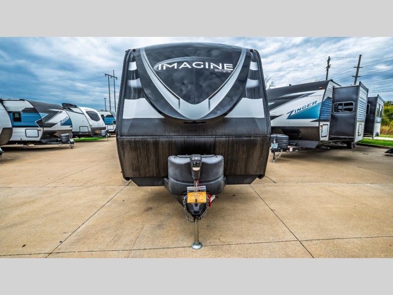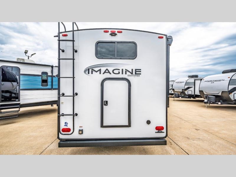 Just imagine leaving the world behind and secluding yourself away with your favorite people in your Grand Design Imagine travel trailer! The Imagine has been designed to enjoy extended season camping and includes a high-capacity furnace, a heated and enclosed underbelly with suspended tanks, a designated heat duct to the subfloor, and a high-density roof insulation with attic vent. You'll have maximum head room on the interior with 81" radius ceilings, and large panoramic windows to let in natural lighting. The exclusive drop-frame pass-through storage compartment is going to allow you to bring along lots of equipment, and the universal docking station is an all-in-one location for utilities and hook-ups. You'll also have industry-leading tank capacities so that you can fill and empty your tanks less often.