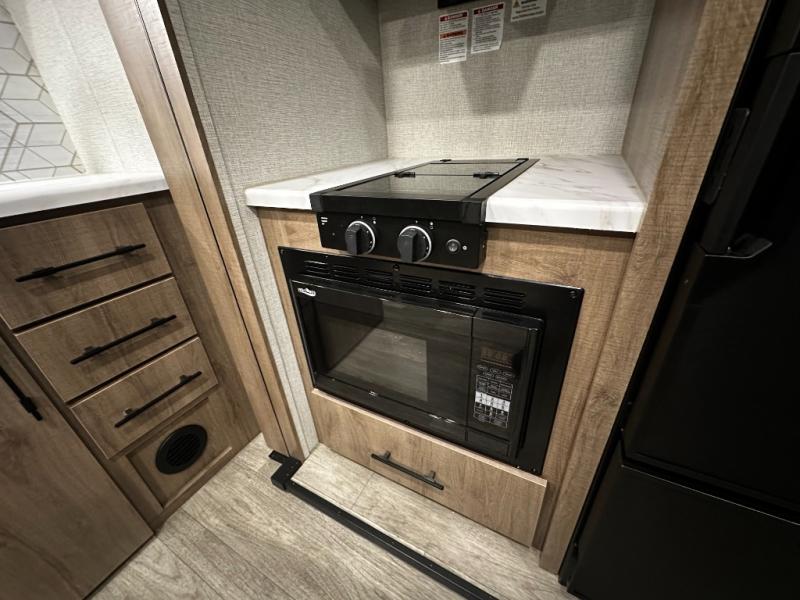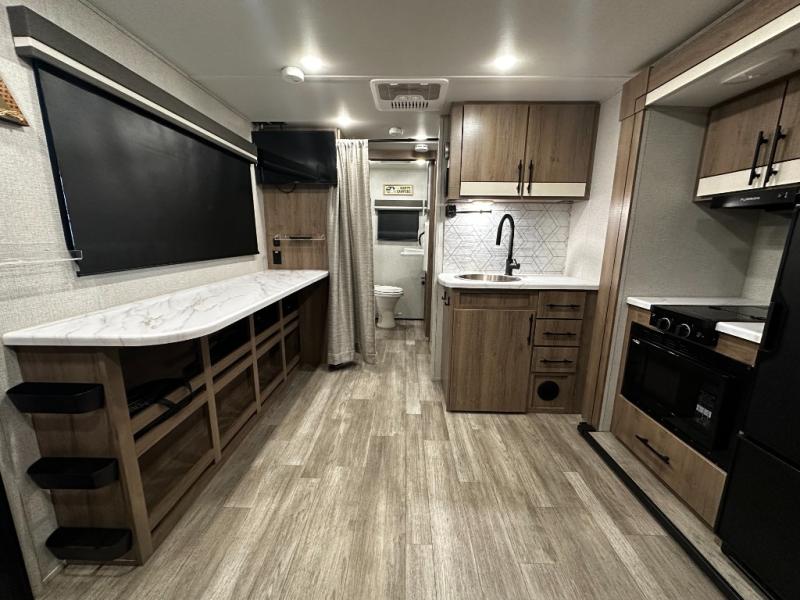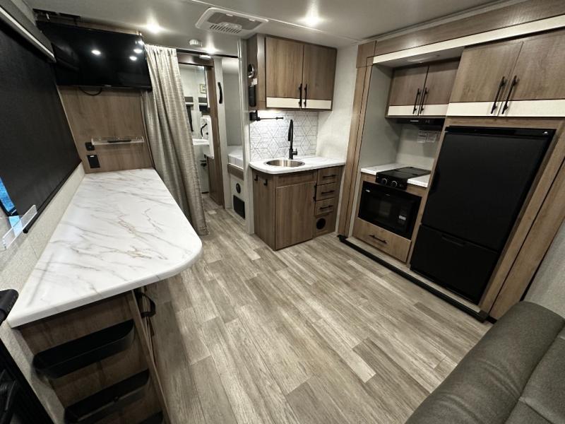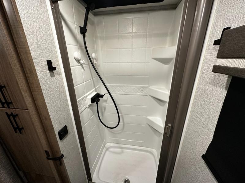 One of the standout features of the 2023 Grand Design Imagine AIM 18BH is the family-friendly bunkhouse. The dedicated bunk beds offer a cozy place for kids or guests to sleep, making this travel trailer ideal for family trips, multi-destination vacations, or hosting friends. The private master bedroom area provides a restful retreat with a comfortable bed and convenient storage for personal belongings.