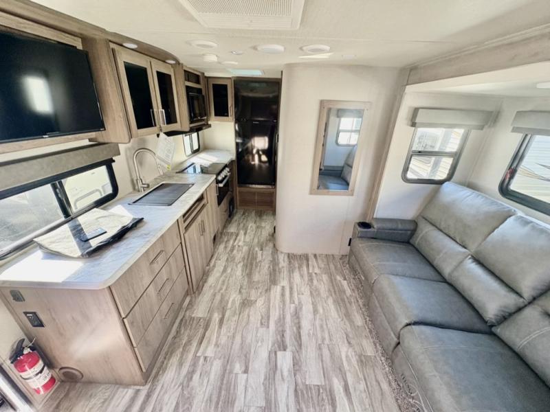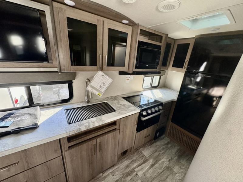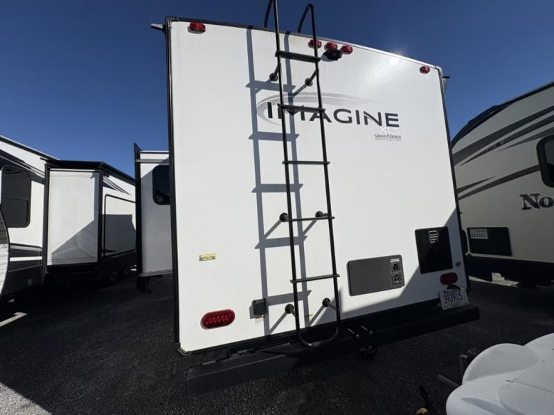 Let your imagination run wild with the possibilities that the Grand Design Imagine XLS travel trailer can provide! The Imagine XLS has been built with oversized tank capacities, an extra-large 2" fresh water drain valve, a ducted A/C system, a power tongue jack, and a heated and enclosed underbelly with suspended tanks. There is a designated heat duct to the subfloor and a residential ductless heating system throughout. For outdoor adventures, the electric awning with LED lights will enable you to stay protected, and the exterior speakers make any time outside a party. You will also love the XLS Solar Package that comes with a 165W roof mounted solar panel, a 25 Amp charge controller, a 12V 10 cu. ft. refrigerator, and roof mounted quick connect plugs!