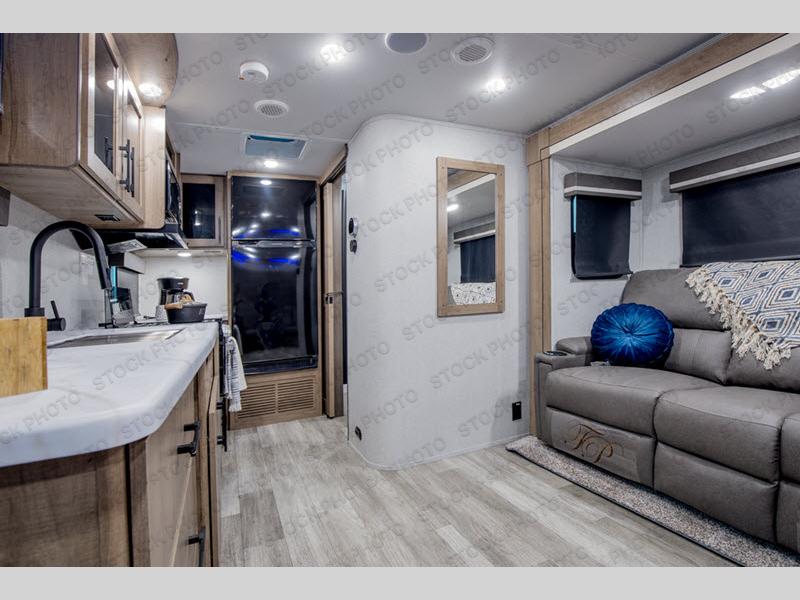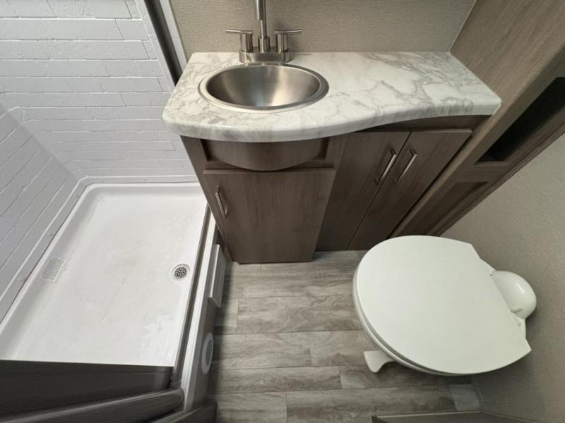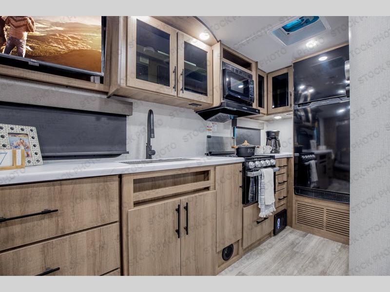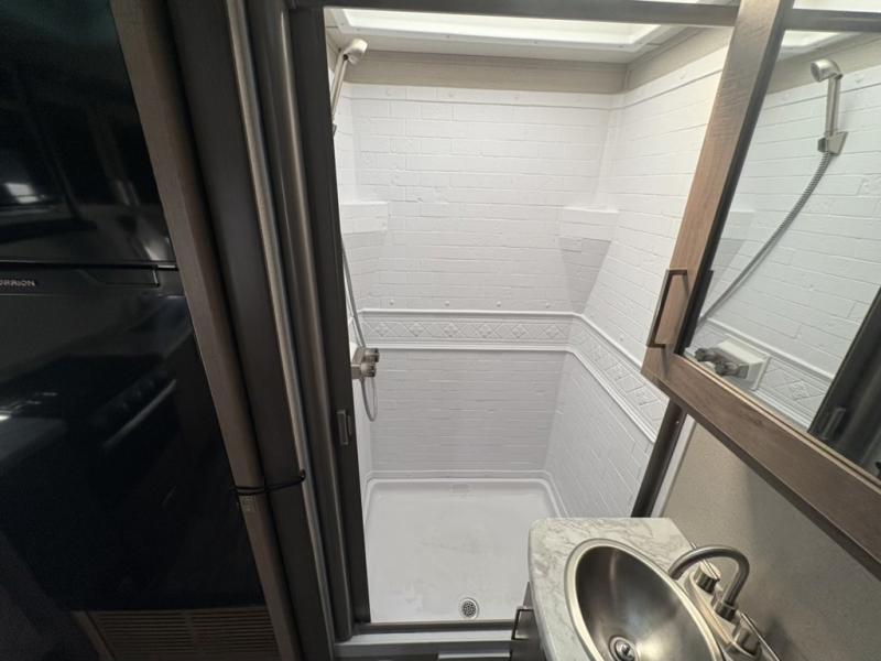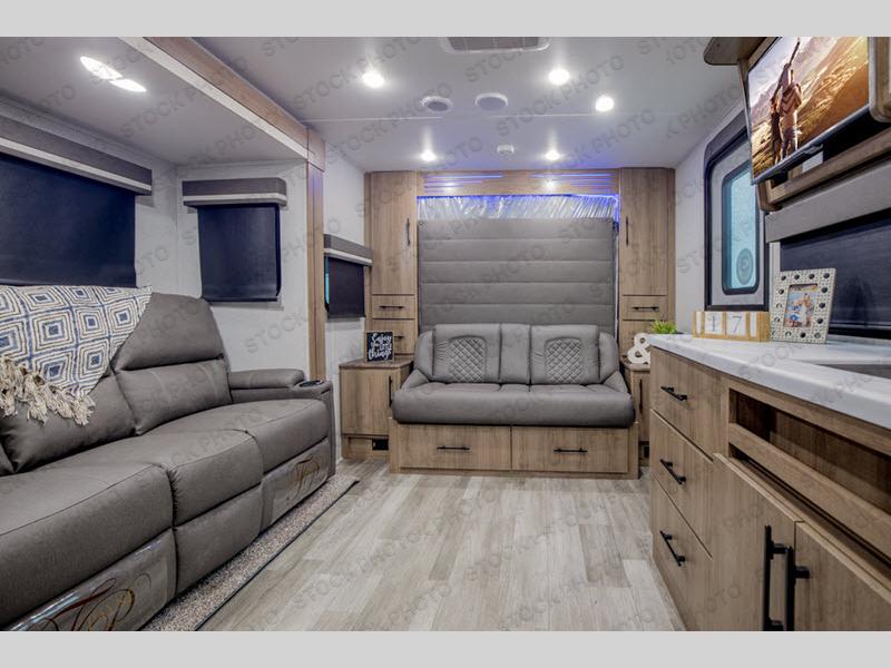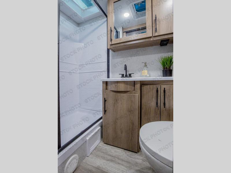 The Murphy bed is the eye-catching feature on this Imagine XLS travel trailer! Not only can it fold away in the morning to reveal a sofa for lounging, but it will also provide you with drawer storage under the sofa. Another functional feature is the theater dinette with a removable table in front. It rests on the single slide so that there is more floor space, and it offers you great comfort while you dine across from the LED HDTV. A full bathroom will keep you clean and fresh with its residential walk-in shower, skylight, linen closet, vanity, toilet, and power vent fan.