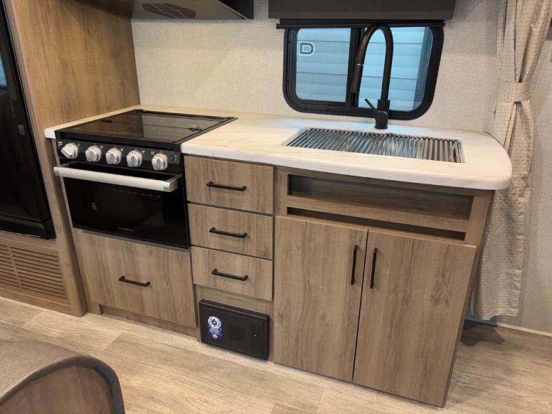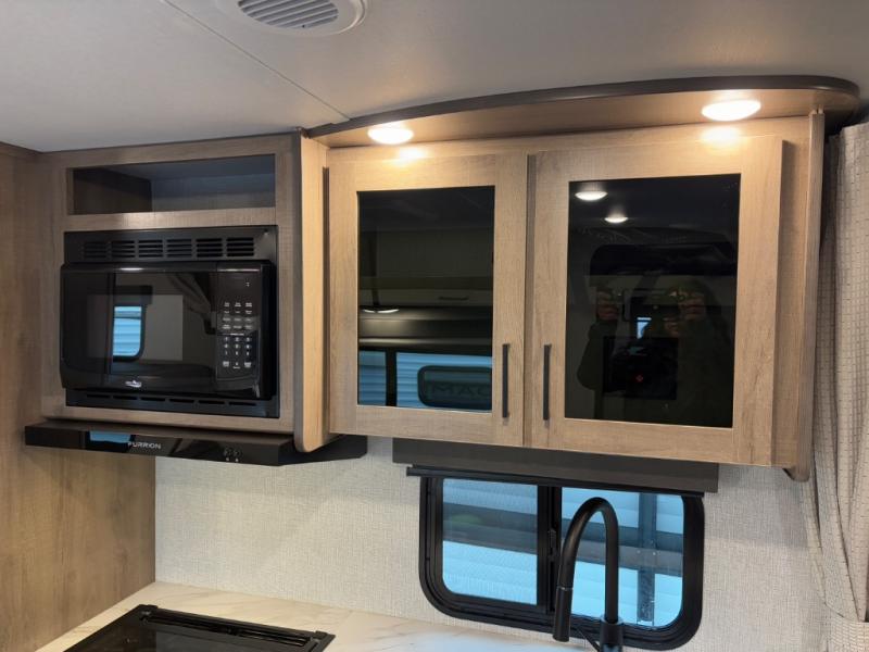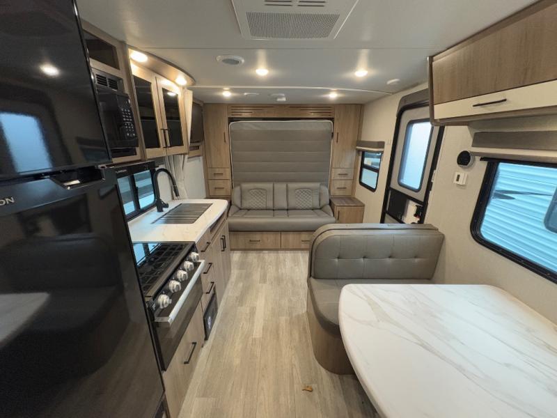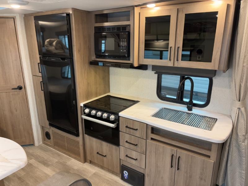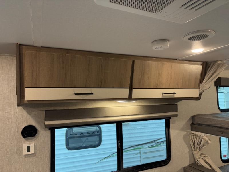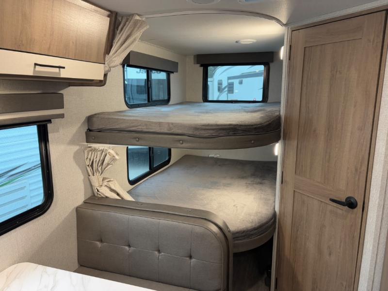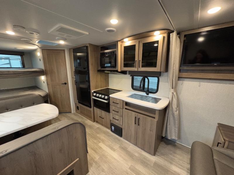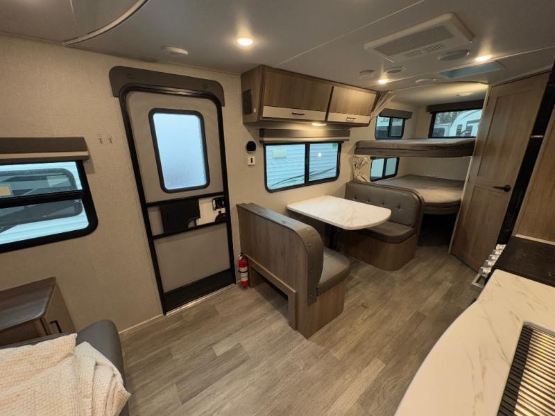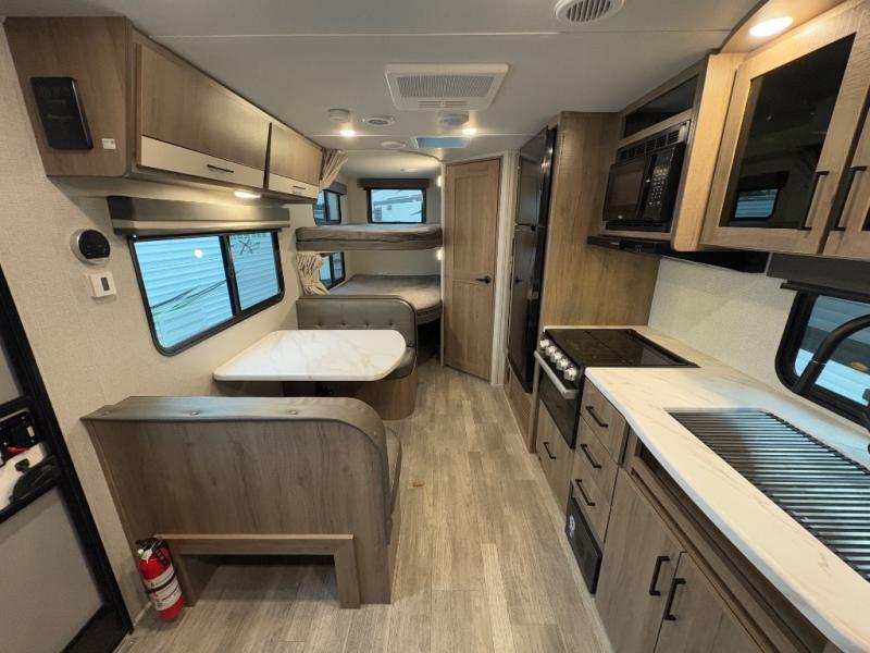Can you think of anything better than a weekend in this Imagine XLS travel trailer! You will never miss home when you see all of the amenities included on this trailer. There is a full bathroom for easy morning routines, a set of double-size bunks with privacy curtains for compact sleeping, shoe storage under the booth dinette, and a full kitchen with all of the appliances needed for filling meals. There is also a privacy curtain in the front that sections off the queen Murphy bed. In addition to all of that, you'll also find an outdoor griddle that you can use when the weather is nice. The unobstructed pass-through storage will be able to store your fishing poles and sports equipment while you travel.