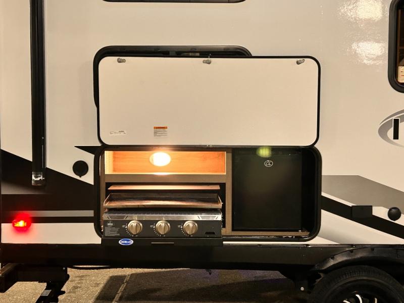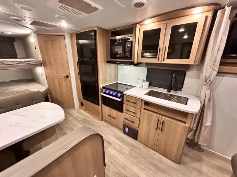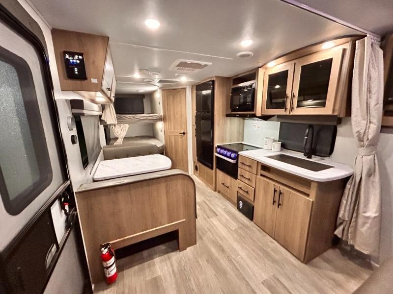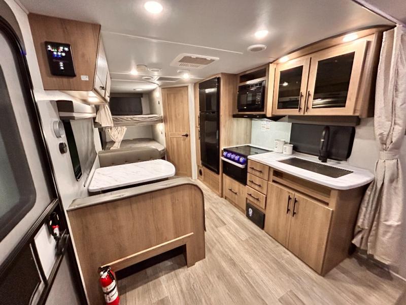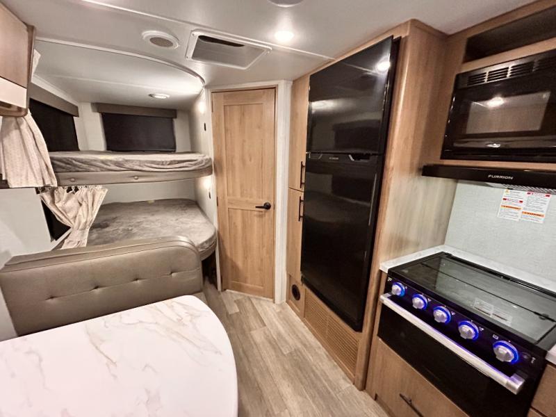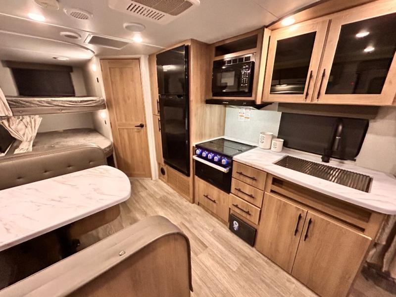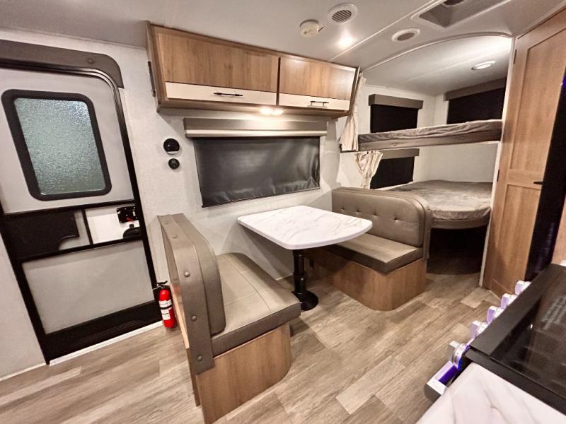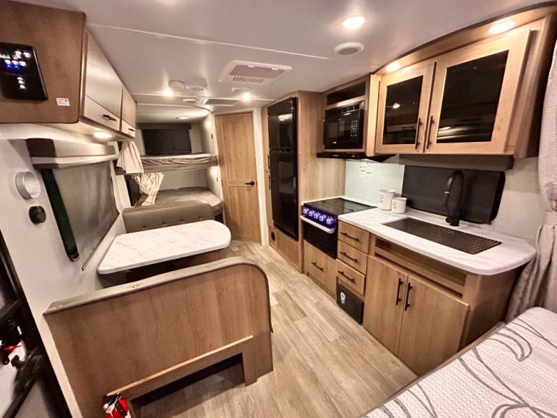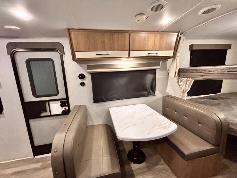 Can you think of anything better than a weekend in this Imagine XLS travel trailer! You will never miss home when you see all of the amenities included on this trailer. There is a full bathroom for easy morning routines, a set of double-size bunks with privacy curtains for compact sleeping, shoe storage under the booth dinette, and a full kitchen with all of the appliances needed for filling meals. There is also a privacy curtain in the front that sections off the queen Murphy bed. In addition to all of that, you'll also find an outdoor griddle that you can use when the weather is nice. The unobstructed pass-through storage will be able to store your fishing poles and sports equipment while you travel.