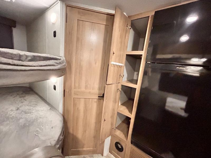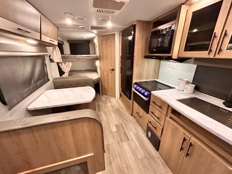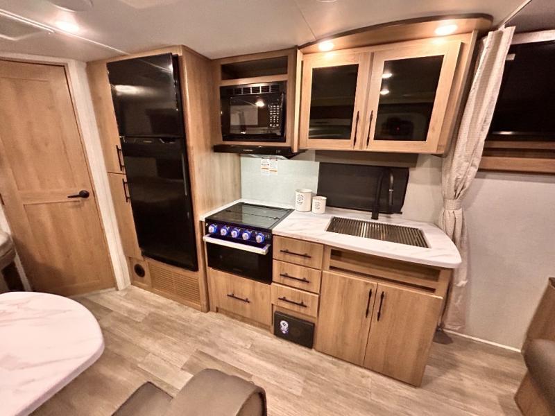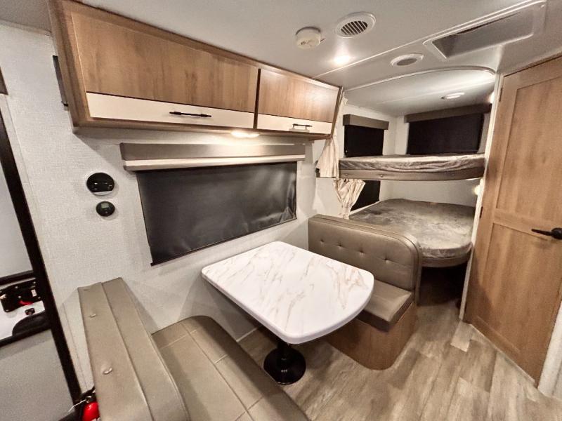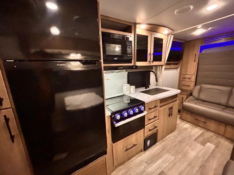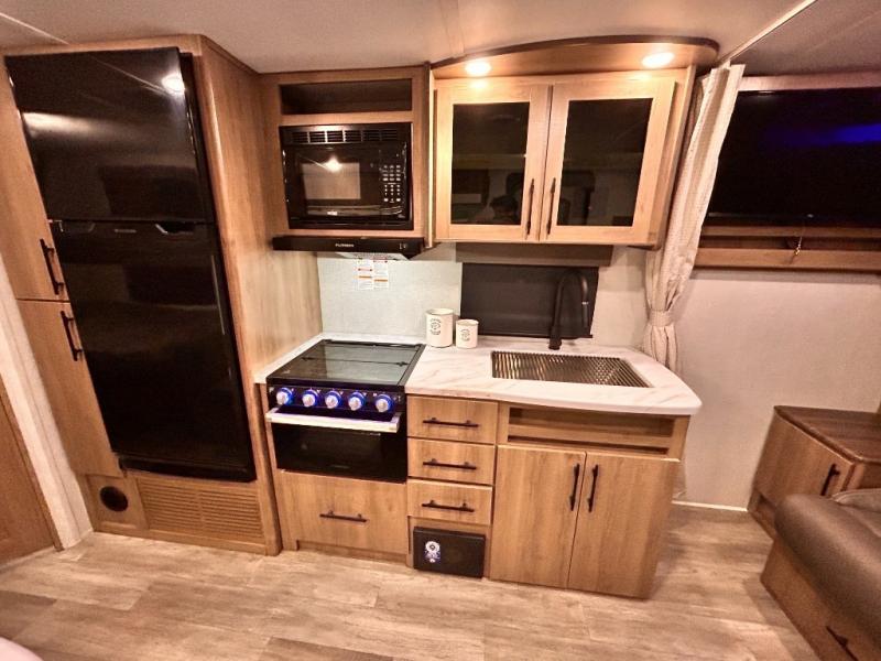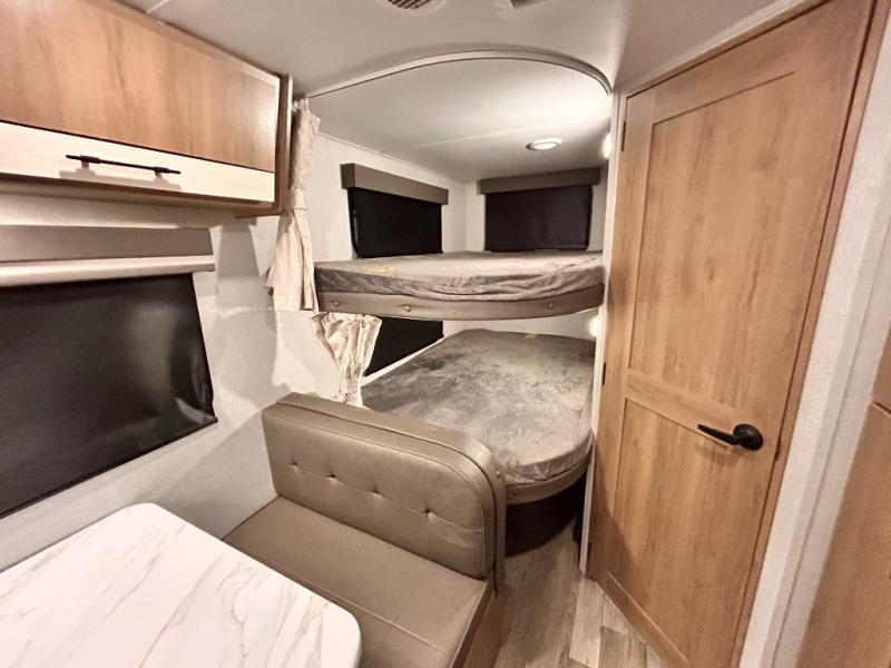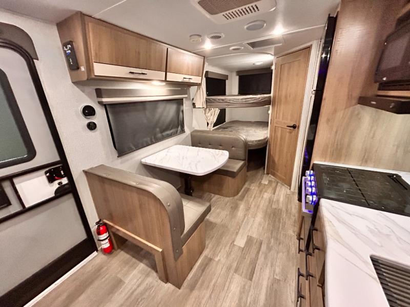 Can you think of anything better than a weekend in this Imagine XLS travel trailer! You will never miss home when you see all of the amenities included on this trailer. There is a full bathroom for easy morning routines, a set of double-size bunks with privacy curtains for compact sleeping, shoe storage under the booth dinette, and a full kitchen with all of the appliances needed for filling meals. There is also a privacy curtain in the front that sections off the queen Murphy bed. In addition to all of that, you'll also find an outdoor griddle that you can use when the weather is nice. The unobstructed pass-through storage will be able to store your fishing poles and sports equipment while you travel.