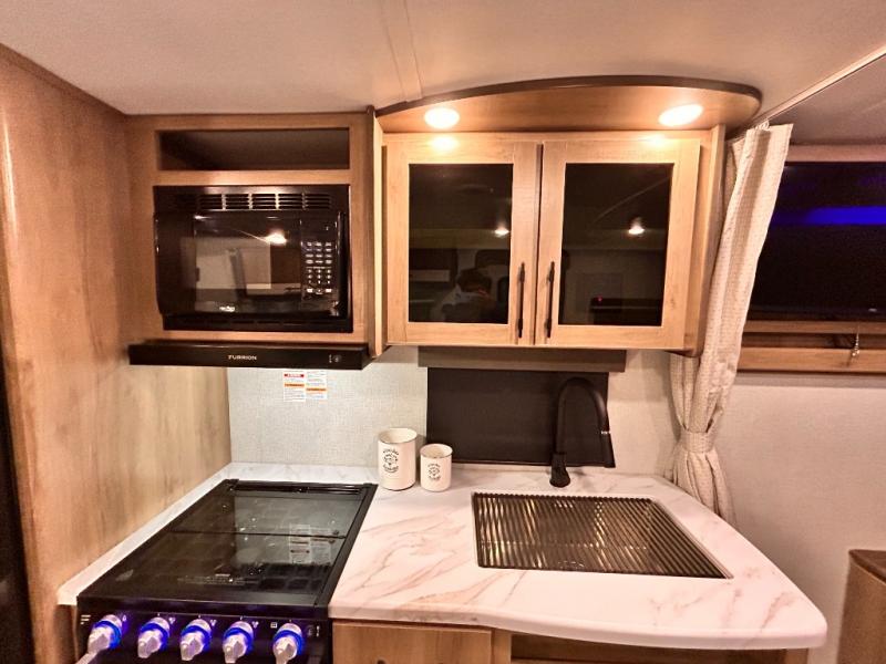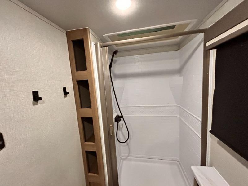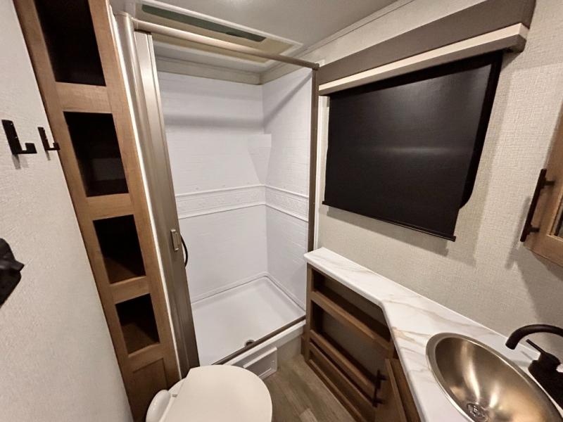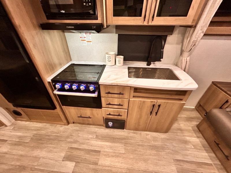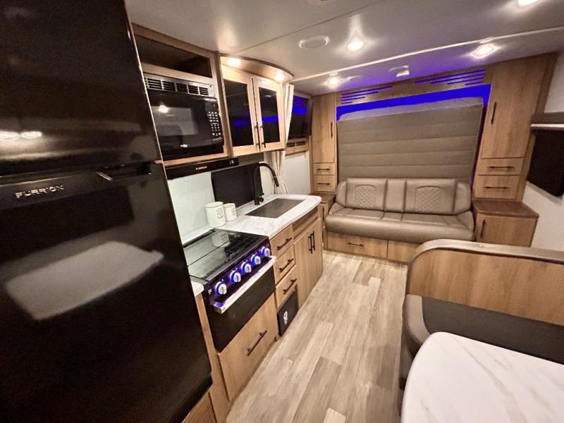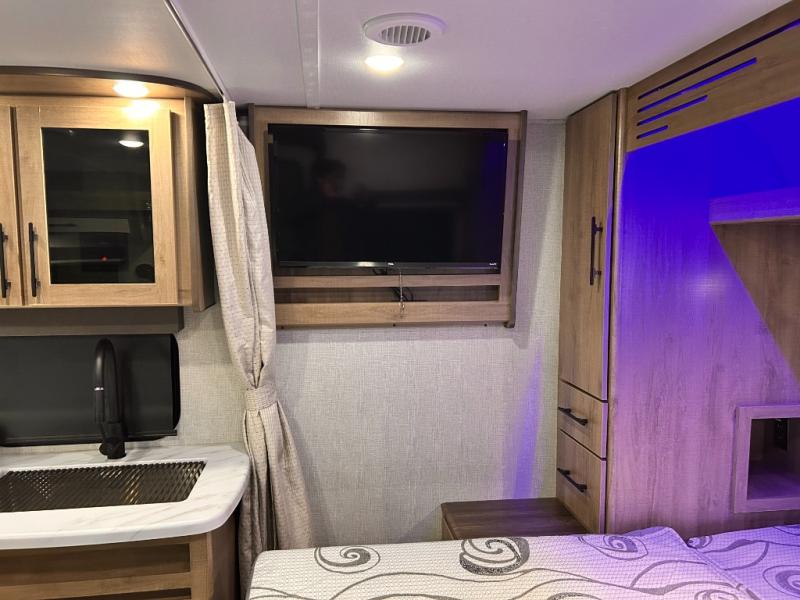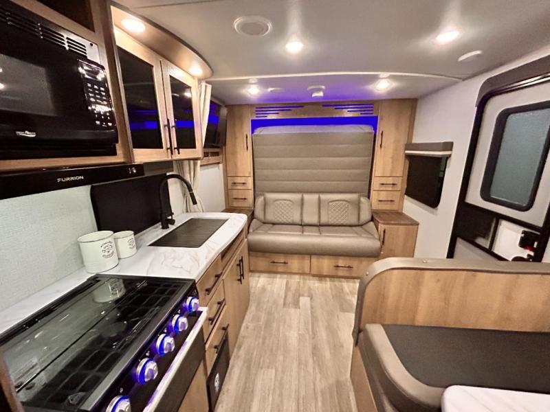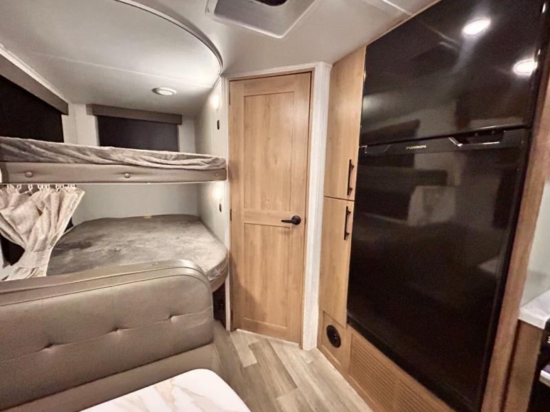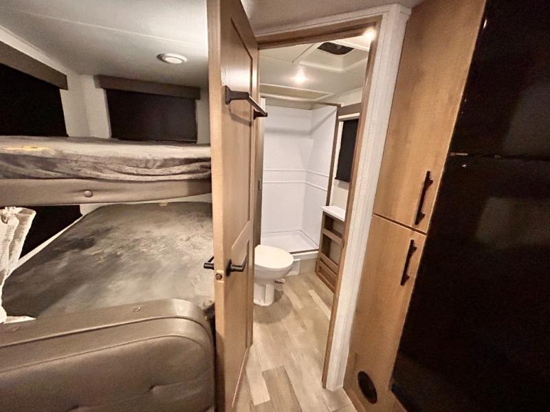 Can you think of anything better than a weekend in this Imagine XLS travel trailer! You will never miss home when you see all of the amenities included on this trailer. There is a full bathroom for easy morning routines, a set of double-size bunks with privacy curtains for compact sleeping, shoe storage under the booth dinette, and a full kitchen with all of the appliances needed for filling meals. There is also a privacy curtain in the front that sections off the queen Murphy bed. In addition to all of that, you'll also find an outdoor griddle that you can use when the weather is nice. The unobstructed pass-through storage will be able to store your fishing poles and sports equipment while you travel.