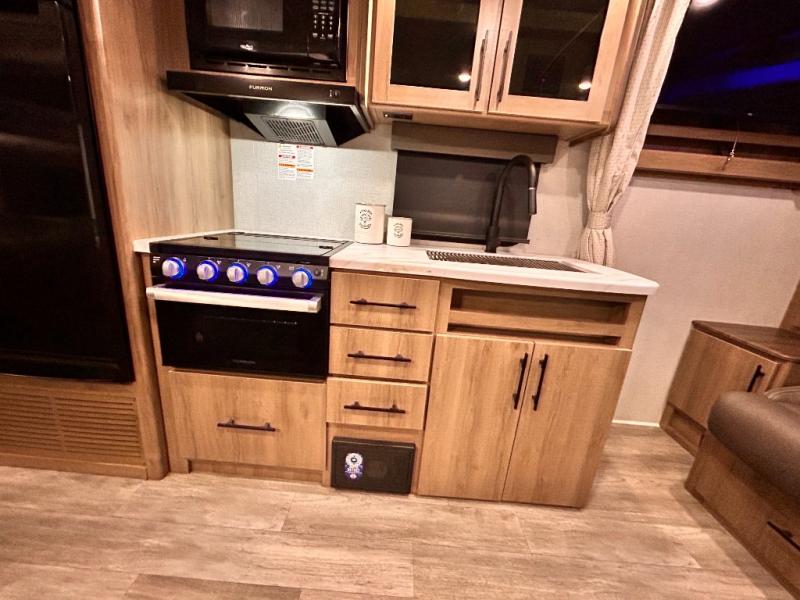 Let your imagination run wild with the possibilities that the Grand Design Imagine XLS travel trailer can provide! The Imagine XLS has been built with oversized tank capacities, an extra-large 2" fresh water drain valve, a ducted A/C system, a power tongue jack, and a heated and enclosed underbelly with suspended tanks. There is a designated heat duct to the subfloor and a residential ductless heating system throughout. For outdoor adventures, the electric awning with LED lights will enable you to stay protected, and the exterior speakers make any time outside a party. You will also love the XLS Solar Package that comes with a 165W roof mounted solar panel, a 25 Amp charge controller, a 12V 10 cu. ft. refrigerator, and roof mounted quick connect plugs!