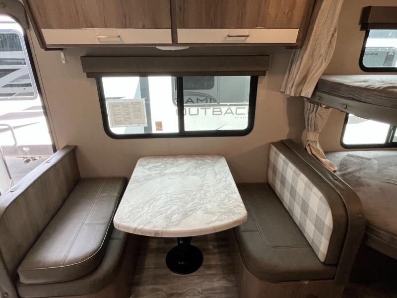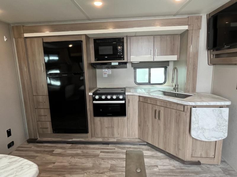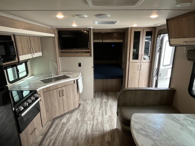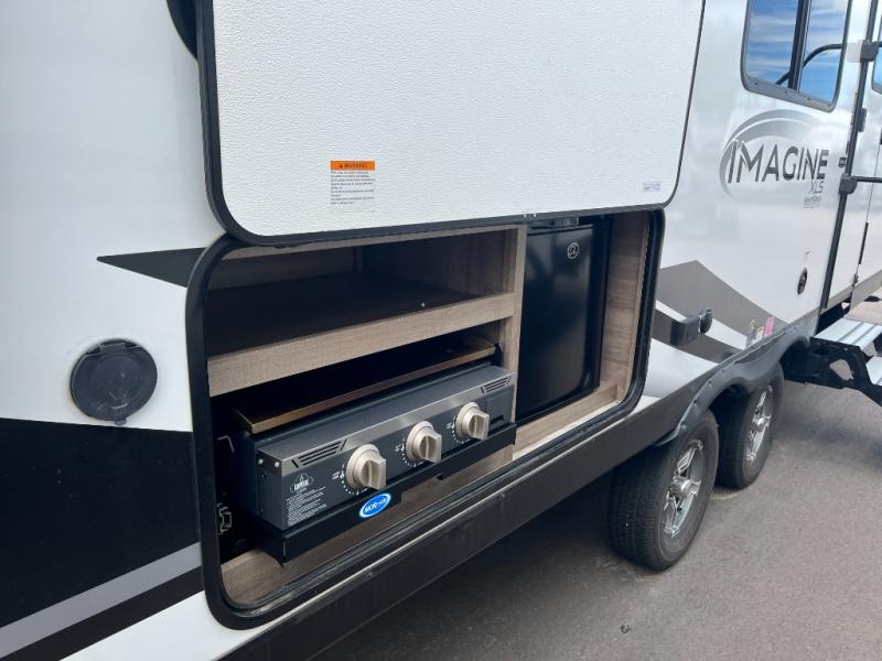It won't be long before you have another trip with this Imagine XLS travel trailer on the agenda! You will find a walk-around queen-size bed up front in the private bedroom, and right next to the entry door is a coat closet so that you can hang up your coats when you come inside. The booth dinette is right next to the window, so you can look out at your surroundings while you enjoy breakfast. The double-size bunks have some privacy curtains, and the bunks are right next to the full bathroom for easy access in the middle of the night. The kitchen rests on the single slide which gives you more space to get dinner in the oven, and you can have some more prep space by using the flip-up countertop extension.