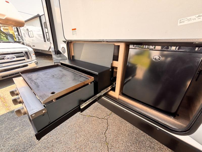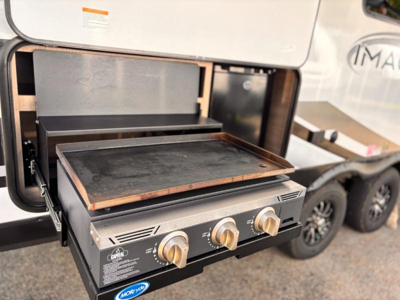 Let your imagination run wild with the possibilities that the Grand Design Imagine XLS travel trailer can provide! The Imagine XLS has been built with oversized tank capacities, an extra-large 2" fresh water drain valve, a ducted A/C system, a power tongue jack, and a heated and enclosed underbelly with suspended tanks. There is a designated heat duct to the subfloor and a residential ductless heating system throughout. For outdoor adventures, the electric awning with LED lights will enable you to stay protected, and the exterior speakers make any time outside a party. You will also love the XLS Solar Package that comes with a 165W roof mounted solar panel, a 25 Amp charge controller, a 12V 10 cu. ft. refrigerator, and roof mounted quick connect plugs!
