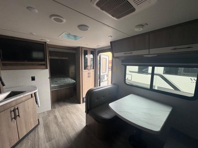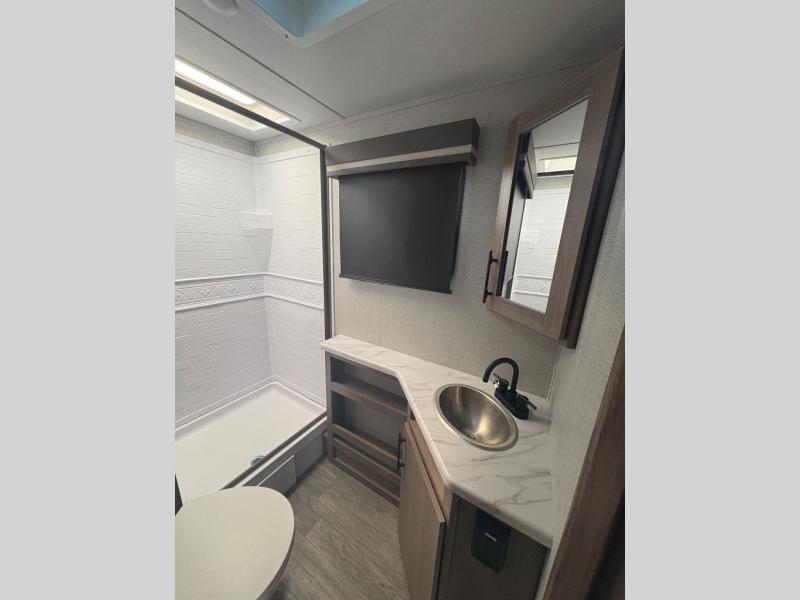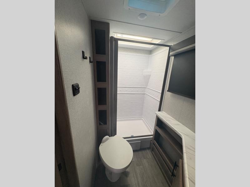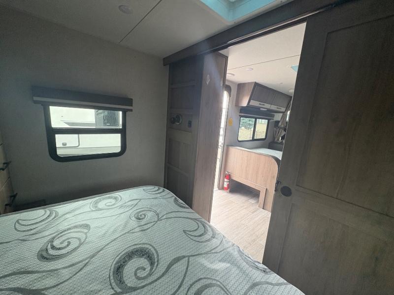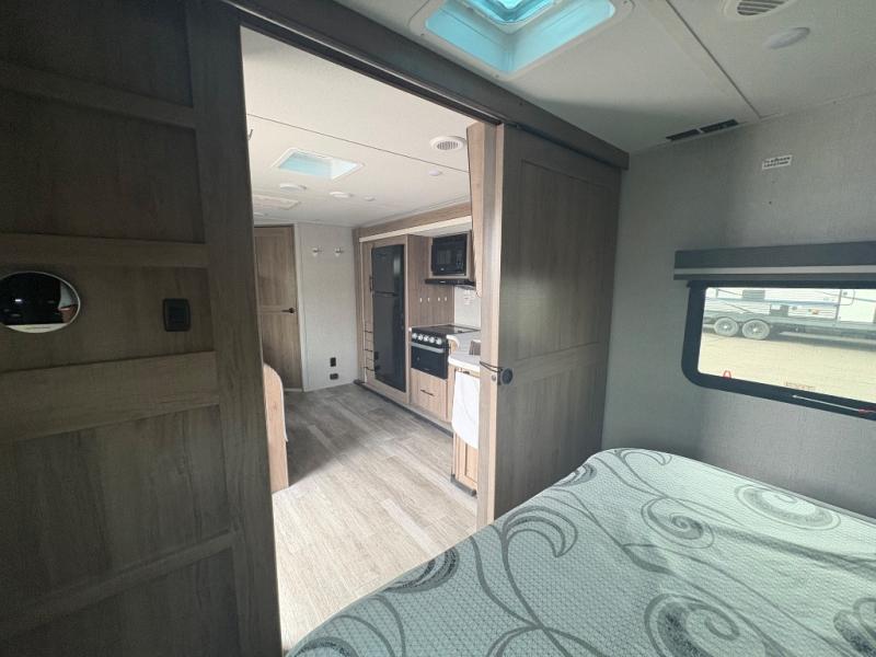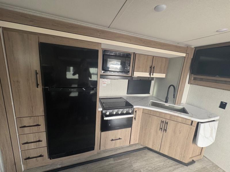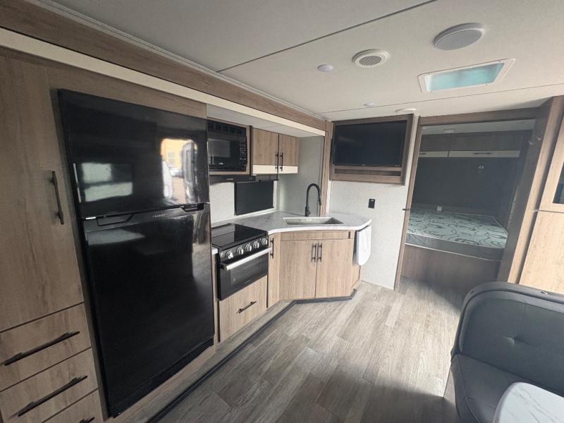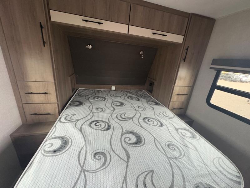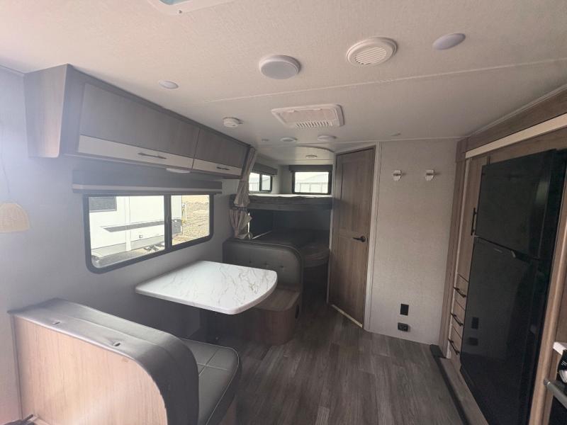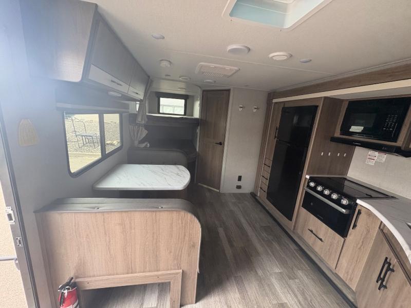 It won't be long before you have another trip with this Imagine XLS travel trailer on the agenda! You will find a walk-around queen-size bed up front in the private bedroom, and right next to the entry door is a coat closet so that you can hang up your coats when you come inside. The booth dinette is right next to the window, so you can look out at your surroundings while you enjoy breakfast. The double-size bunks have some privacy curtains, and the bunks are right next to the full bathroom for easy access in the middle of the night. The kitchen rests on the single slide which gives you more space to get dinner in the oven, and you can have some more prep space by using the flip-up countertop extension.