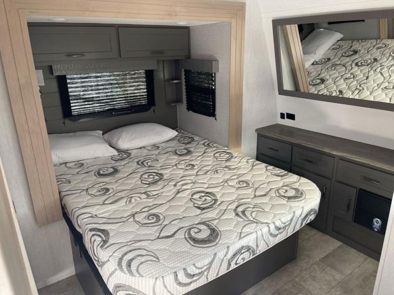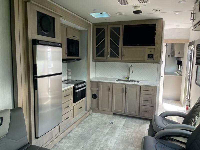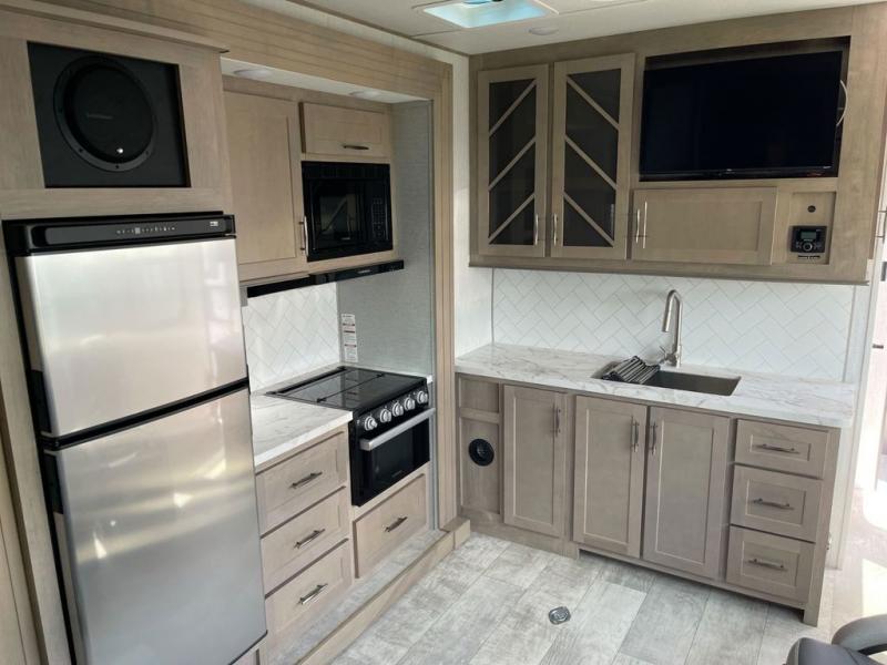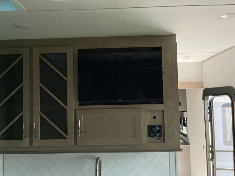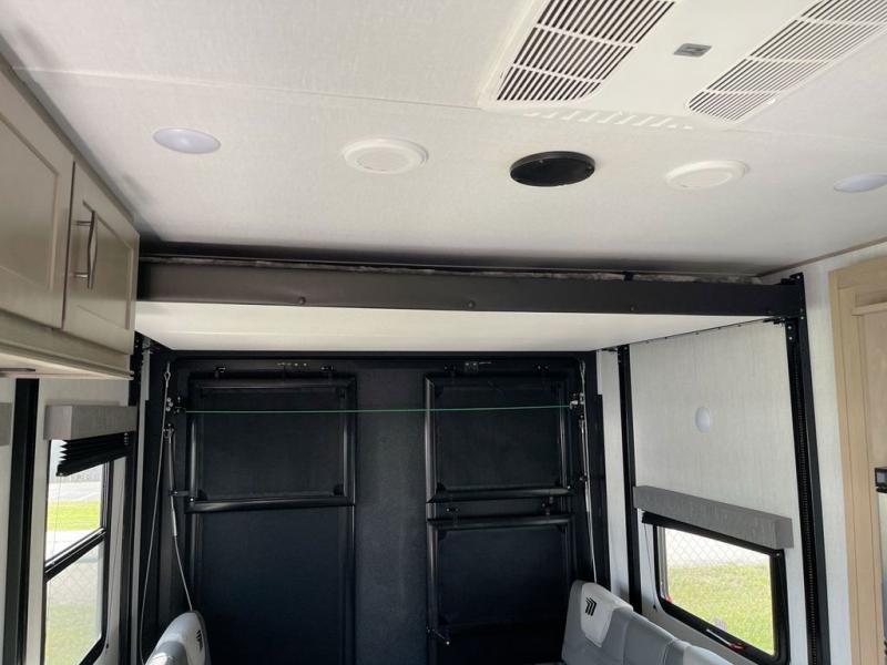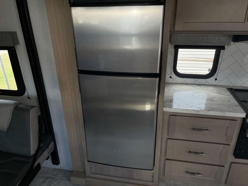 Are you looking for adventure and fun? The Momentum G-Class toy hauler by Grand Design will help you find it! You can explore during any season you choose with the Insulation Package that includes a heated and enclosed underbelly with suspended tanks, a high-capacity furnace, a moisture barrier floor enclosure, and cabinet-mounted heat ducts. Each model includes a 30-gallon fuel station with an interior and exterior gauge, a dovetail rear rend, and 2,500-LB tie-downs anchored into the chassis. Throughout the Momentum G-Class interior, you'll enjoy many comfortable features like large panoramic windows, a shower skylight, USB chargers in the bedroom, and residential cabinetry.