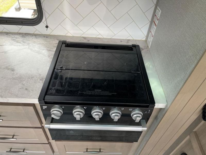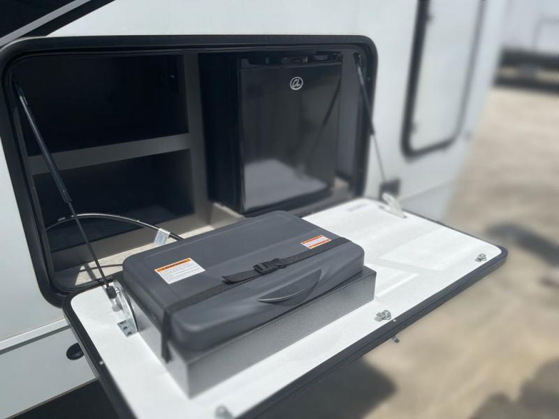 It's time to load up your family and off-road toys to enjoy the great outdoors at the speed you like with this Momentum G-Class toy hauler. Once at your destination, unload the toys from the 13' 6" of cargo space, put out the two slides, and start having fun. You can cook meals in the spacious kitchen area with extra counter space and relax in the Euro chairs or on the rollover sofas with a table. You can even cook at the outside kitchen underneath the 19' power awning. Once it's bedtime, the kids can sleep on the Happi-Jac power bunk or rollover sofas in the main area, and everyone is sure to appreciate the USB charging outlets to keep the electronics up and running just like the fuel station will do for the toys.