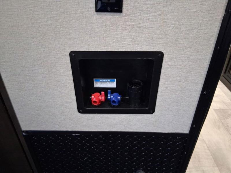 Get ready for a lot of fun when you head out to the off-road park, a special event, or a long trip with your toys! You will love the garage with the Fast Ramp rear ramp door, the Ram-Air garage vents on both sides, the 2,500 lb. rated flush-mount tie-downs and the protective diamond plate on the garage sidewalls. This area can become a bedroom or an extra living area if you want to add Happi-Jac rollover sofas/table with a top bed option, plus you will already have a half bath for convenience, an LED TV and storage for your gear. The living and kitchen area is spacious with dual slides and a kitchen island with bar stools, a free standing table and theatre seating or choose the super sofa option, and everything you need to feed everyone. The fold-down side patio offers an LED TV, storage and a great place to relax outdoors above ground. There are many more features to enjoy, and several options to customize your fifth wheel.