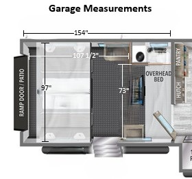 There is much to love about this fifth wheel toy hauler! Starting with the 13' 6" garage (see photo for more measurements) that comes with Happi-jac rollover sofas with table and an optional top bed above them, an overhead bed, an LED TV, one of the dual entry doors, and an optional half bath to add. You will also love the ramp door/patio for entertainment at night. The chef will love cooking in the kitchen with a hutch, three burner cooktop, and an island with a flip-up countertop and two bar stools for extra helpers. The rest of the group can socialize together at either the free standing dinette or at the chaise lounge with pull-out sofa across from the entertainment center with an LED TV and fireplace. As you head to the front of the unit, you will pass through the separated bathroom with a private toilet and a shower with a flip-up teak seat. It enters directly into the front private bedroom where there is a queen bed slide to lay your head on at night, a front wardrobe prepped to add an optional washer and dryer, and a flip-up dresser with TV prep above it!