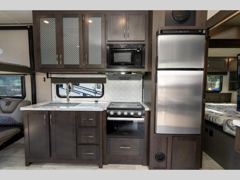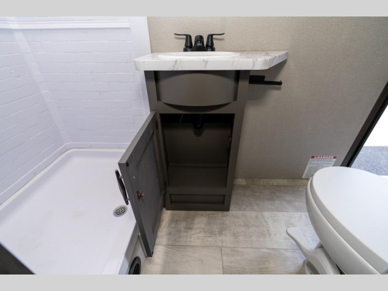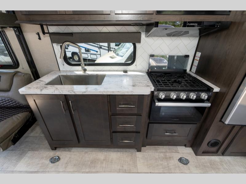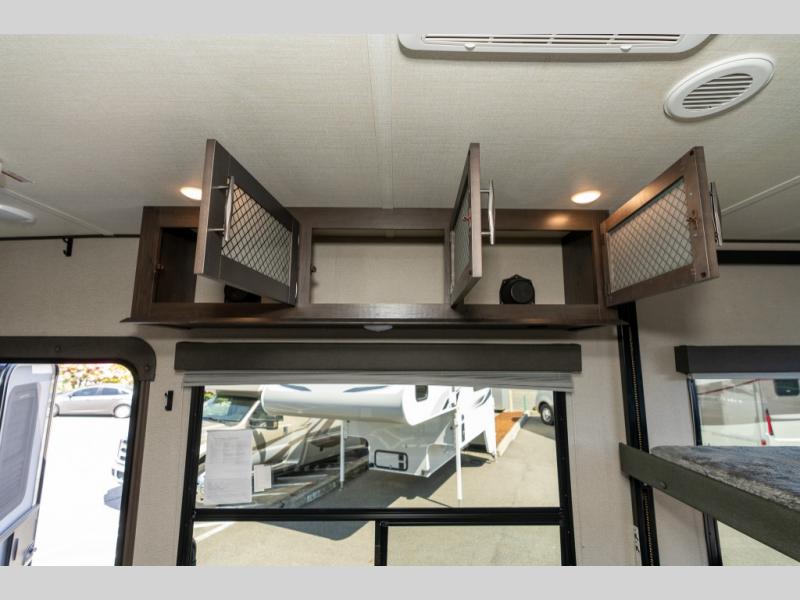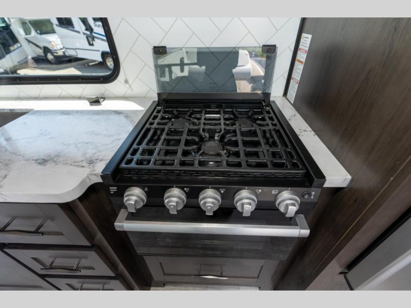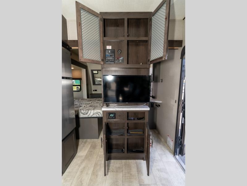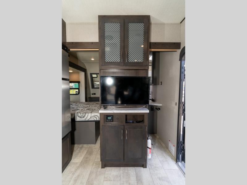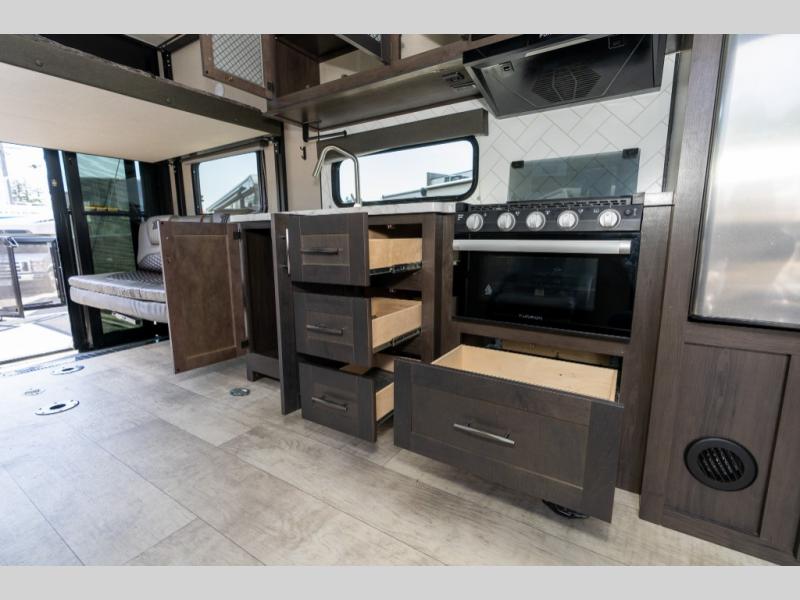 Are you looking for adventure and fun? The Momentum G-Class toy hauler by Grand Design will help you find it! You can explore during any season you choose with the Insulation Package that includes a heated and enclosed underbelly with suspended tanks, a high-capacity furnace, a moisture barrier floor enclosure, and cabinet-mounted heat ducts. Each model includes a 30-gallon fuel station with an interior and exterior gauge, a dovetail rear rend, and 2,500-LB tie-downs anchored into the chassis. Throughout the Momentum G-Class interior, you'll enjoy many comfortable features like large panoramic windows, a shower skylight, USB chargers in the bedroom, and residential cabinetry.