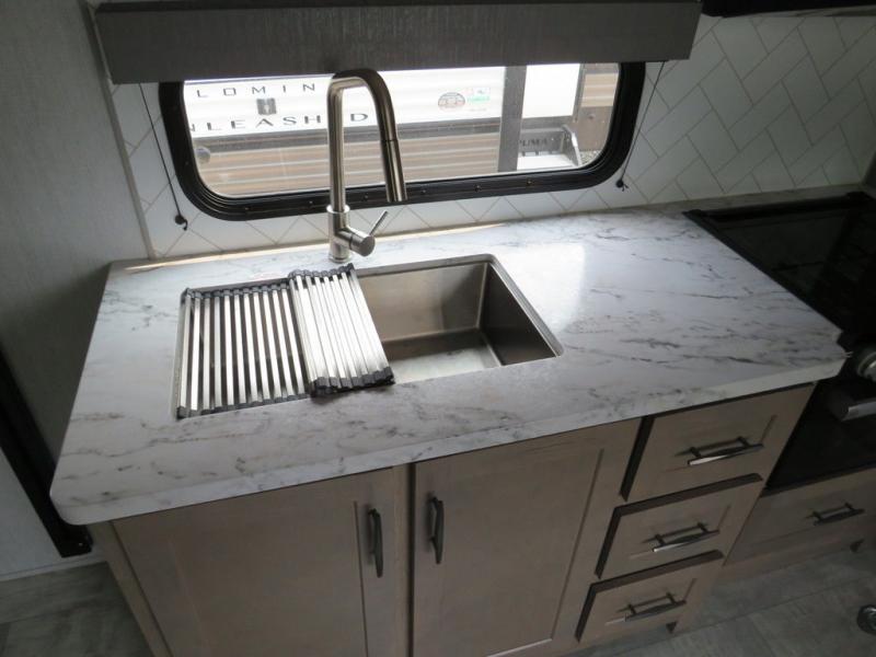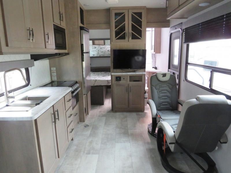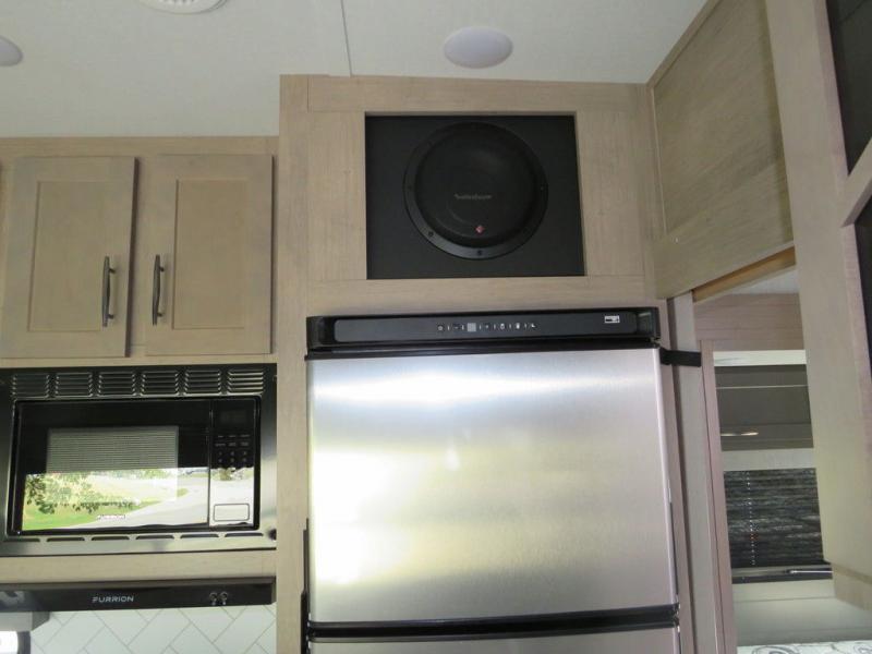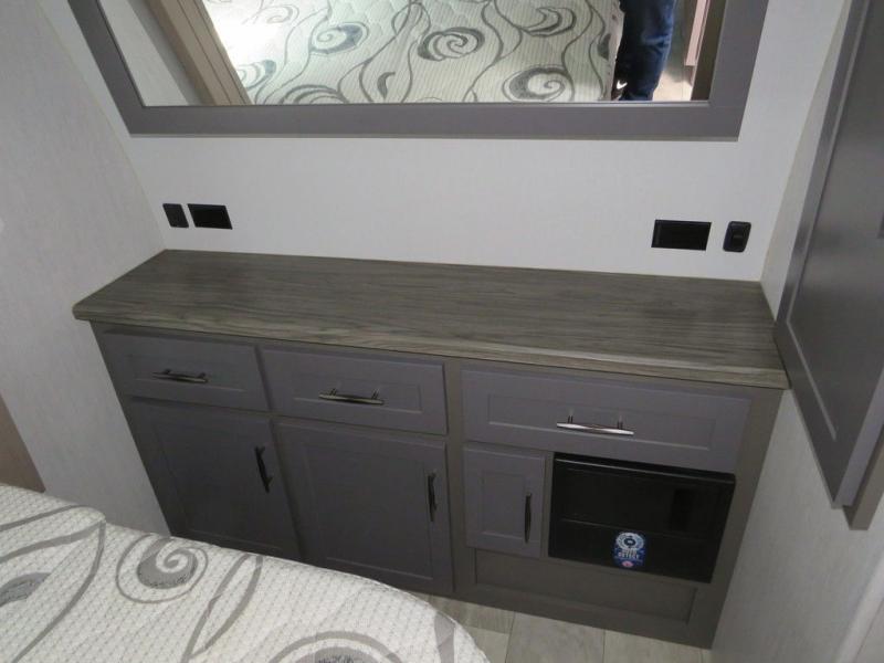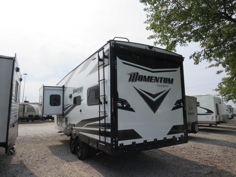 Are you looking for adventure and fun? The Momentum G-Class toy hauler by Grand Design will help you find it! You can explore during any season you choose with the Insulation Package that includes a heated and enclosed underbelly with suspended tanks, a high-capacity furnace, a moisture barrier floor enclosure, and cabinet-mounted heat ducts. Each model includes a 30-gallon fuel station with an interior and exterior gauge, a dovetail rear rend, and 2,500-LB tie-downs anchored into the chassis. Throughout the Momentum G-Class interior, you'll enjoy many comfortable features like large panoramic windows, a shower skylight, USB chargers in the bedroom, and residential cabinetry.