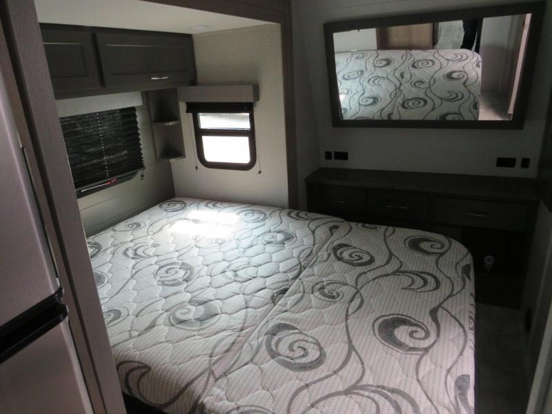 You don't have to rough it with all the amenities found in this Momentum G-Class toy hauler including your own master suite with a walk-around queen bed slide and private access into the dual-entry bathroom. The kids or your friends can sleep on the Happi-Jac power bunk above the rollover sofas with a table, and the Euro chairs can become the waiting area for the next rider. Keep the party going all weekend long with your very own fuel station and the exterior speakers. Come see why this model will fit perfectly into your off-road lifestyle!