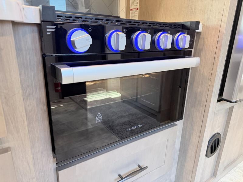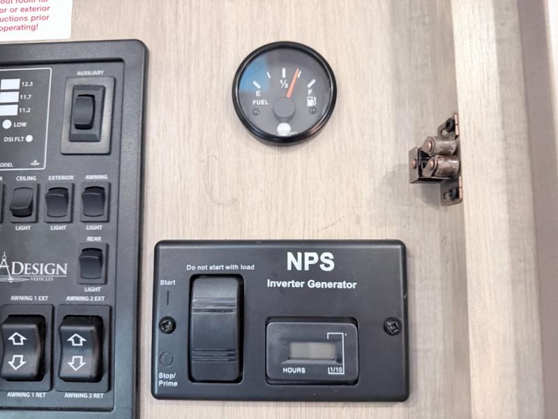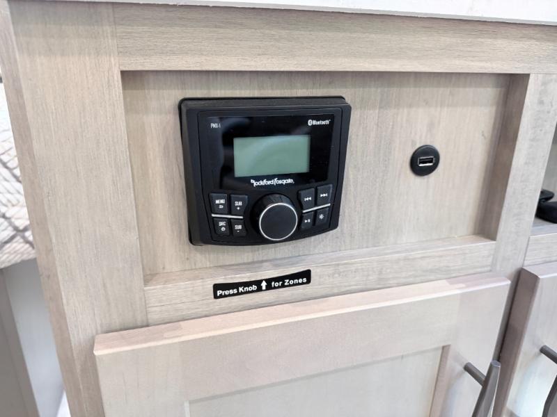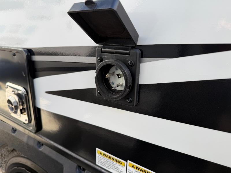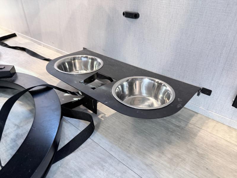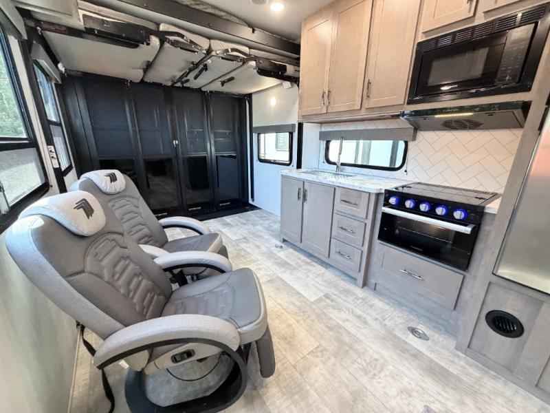 Enjoy a 14' garage space with tie-downs to secure your off-road vehicles. The ramp door converts into a patio for outdoor entertaining, complemented by exterior speakers and the 30-gallon fuel station with interior and exterior gauges to keep your adventures fueled.