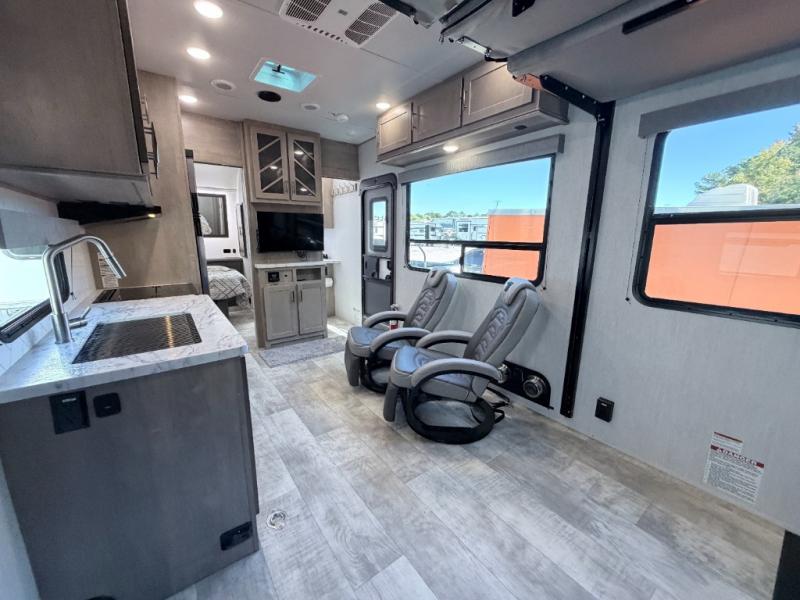 The Grand Design Momentum G-Class 21G toy hauler blends luxury, comfort, and adventure-ready features. With a spacious master suite, versatile garage, and fuel station, this unit is perfect for off-road enthusiasts looking to travel in style. Explore any season with confidence and enjoy both indoor and outdoor living in this feature-packed toy hauler.