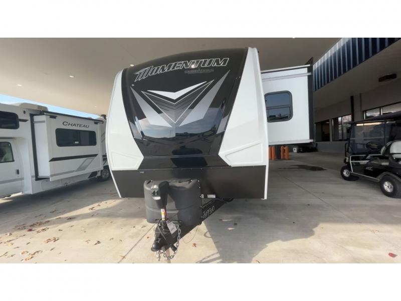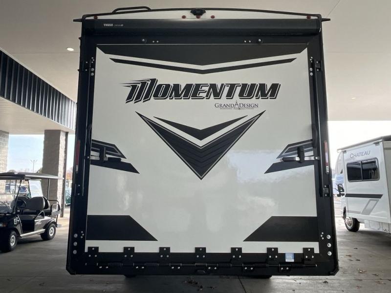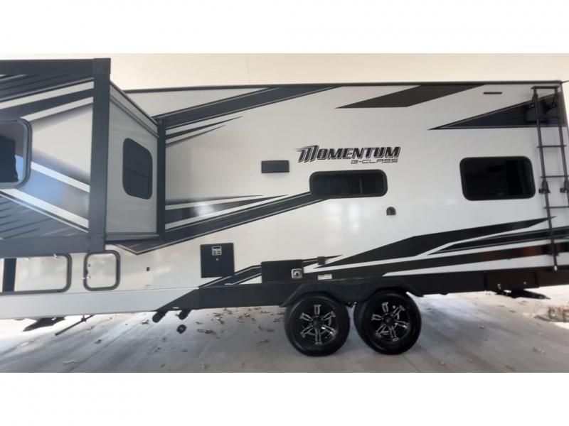 Are you looking for adventure and fun? The Momentum G-Class toy hauler by Grand Design will help you find it! You can explore during any season you choose with the Insulation Package that includes a heated and enclosed underbelly with suspended tanks, a high-capacity furnace, a moisture barrier floor enclosure, and cabinet-mounted heat ducts. Each model includes a 30-gallon fuel station with an interior and exterior gauge, a dovetail rear rend, and 2,500-LB tie-downs anchored into the chassis. Throughout the Momentum G-Class interior, you'll enjoy many comfortable features like large panoramic windows, a shower skylight, USB chargers in the bedroom, and residential cabinetry.