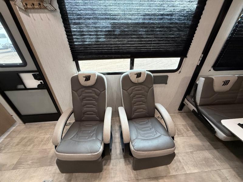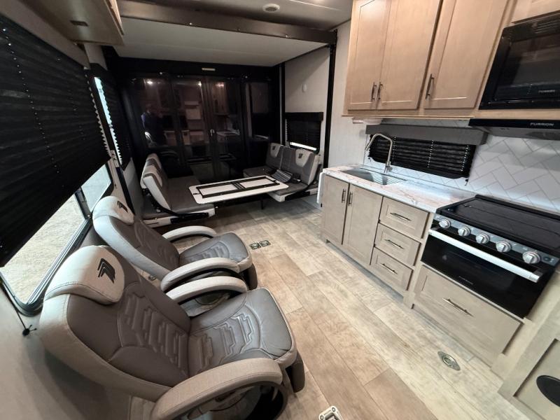 You'll be a force to reckon with in this Momentum G-Class toy hauler! The master suite provides great convenience since it contains extra space from the king bed slide, and the private entrance into the dual-entry bathroom allows you to discreetly clean up each morning. For those who like to start their morning off right with a hearty breakfast, you'll be able to use the flip-up table in the kitchen to get all of your ingredients together. As soon as those smells start wafting throughout, anyone who was sleeping on the rollover sofas or top bed will immediately come join you. The USB charging outlets in between the Euro chairs will allow you to charge your phone while you relax, and the exterior storage will hold extra gear for beach day.