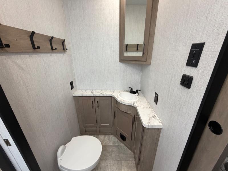 If 16' up to 20' 8" of toy parking space is what you need, and adventure is what you seek, then check out this Momentum G-Class toy hauler! The rear ramp door allows you to easily park your favorite off-road toys and take them to your favorite stomping grounds where you can kick back and relax in camp, or enjoy the trails with family and friends. Once you unload your toys and gear, you can set up the ramp patio with 8' awning to enjoy. Happi-Jac rollover sofas with a table between will provide a place to gather for a meal inside, and at night both can be turned into sleeping space for four tired campers with the Happ-Jac top bed lowered. There is another sofa and two Euro chairs for more seating inside this space each with flip-up tables nearby. A large walk-through bath provides a shower with skylight so all can get cleaned up and refreshed, and two will enjoy the private front bedroom featuring a queen bed slide with dresser and wardrobe space for all of your clothing. This unit also features an outside kitchen just off the 18' awning so you can enjoy as much outdoor time as you like.