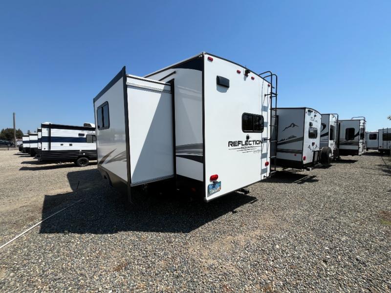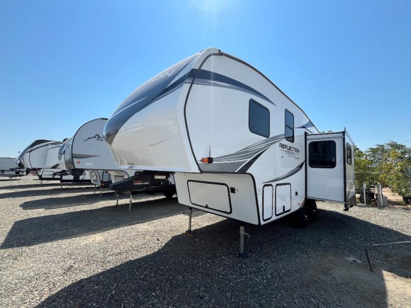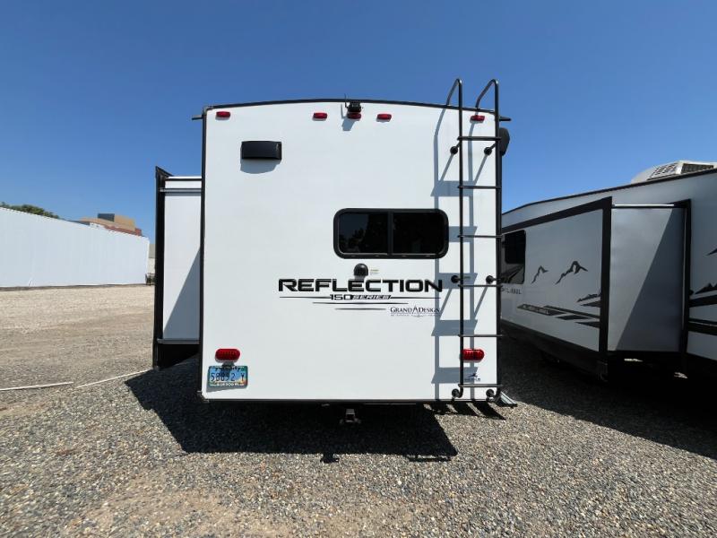 With any Reflection 150 Series fifth wheel by Grand Design, there is more available payload capacity and a broader range of half-ton trucks capable of towing this fifth wheel, and no slider hitch is needed thanks to the 90-degree turning radius which makes them short bed friendly and easier to tow. The mandatory Ultimate Power package provides a "One-Touch" automatic leveling system and a detachable power cord with LED light for easy setup, plus motion sensor pass-through lighting and entry lighting, and the Tire Linc TPMS will help you stay safe on the road. The interior offers residential luxury from the cabinetry and premium congoleum flooring, plus the booth dinette to the residential-style window treatment. Make your refined decision today!
