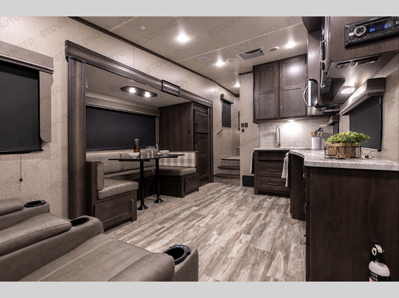 With any Reflection 150 Series fifth wheel by Grand Design, there is more available payload capacity and a broader range of half-ton trucks capable of towing this fifth wheel, and no slider hitch is needed thanks to the 90-degree turning radius which makes them short bed friendly and easier to tow. The mandatory Ultimate Power package provides a "One-Touch" automatic leveling system and a detachable power cord with LED light for easy setup, plus motion sensor pass-through lighting and entry lighting, and the Tire Linc TPMS will help you stay safe on the road. The interior offers residential luxury from the cabinetry and premium congoleum flooring, plus the booth dinette to the residential-style window treatment. Make your refined decision today!