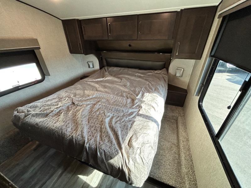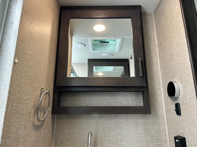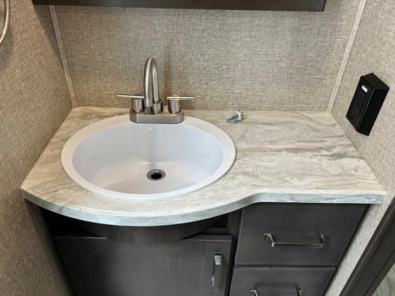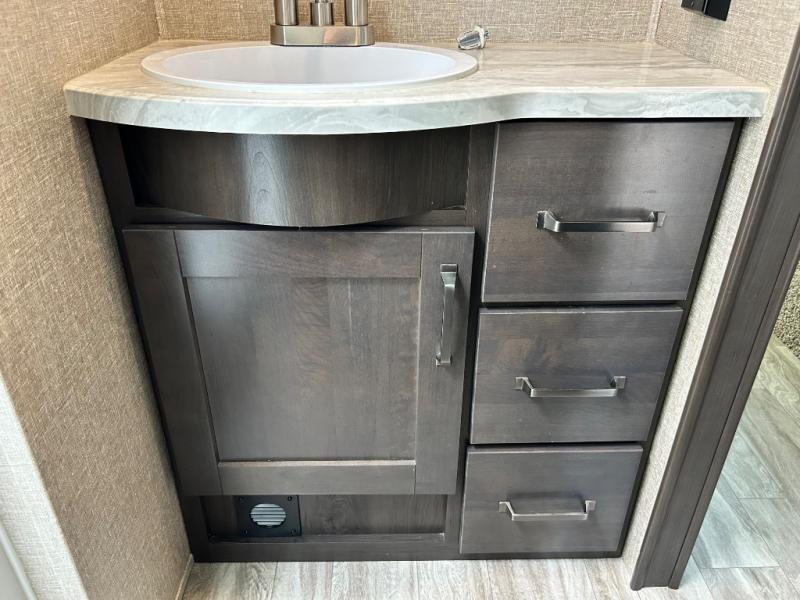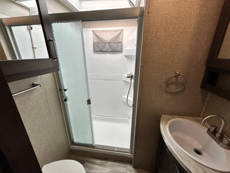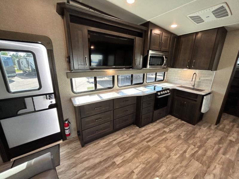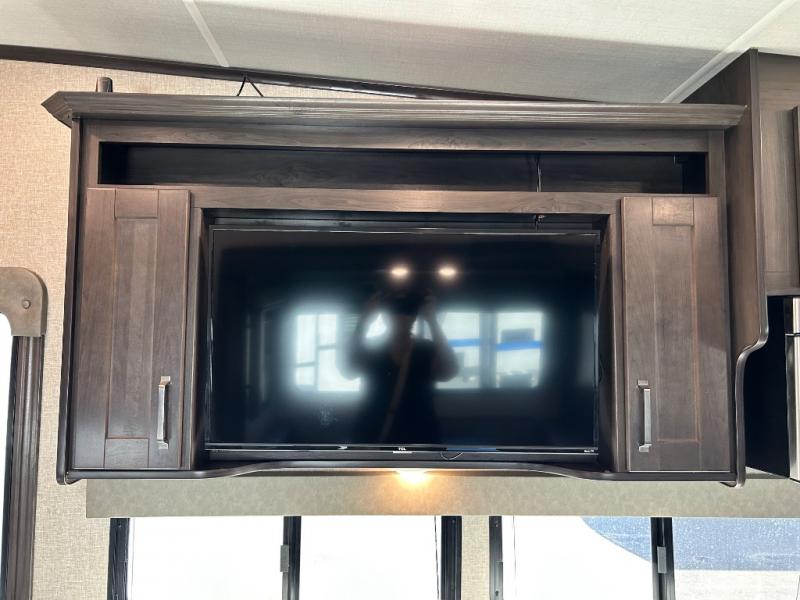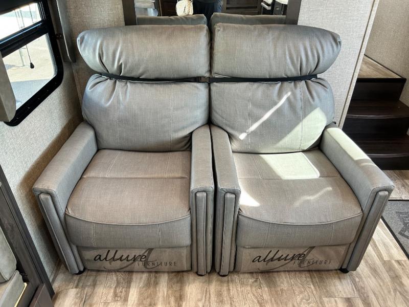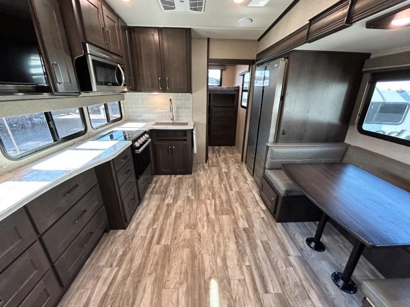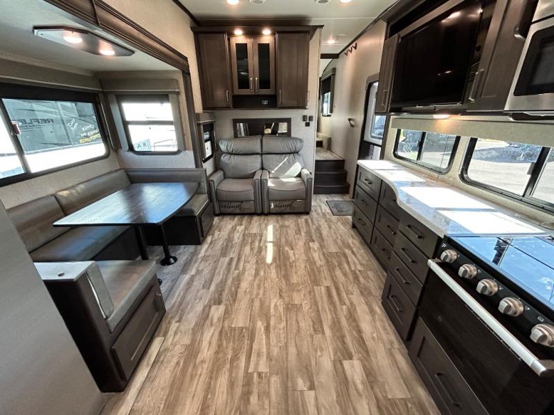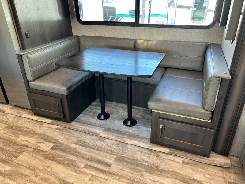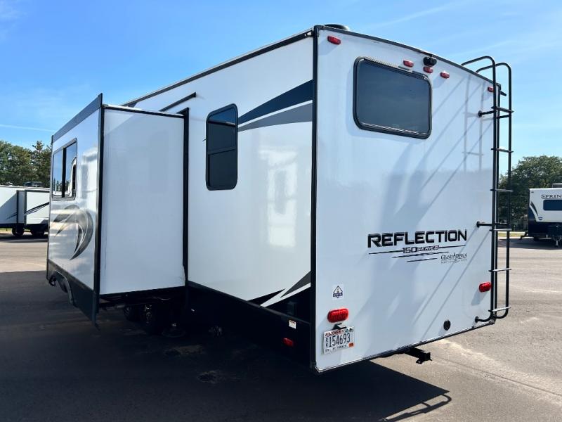 With any Reflection 150 Series fifth wheel by Grand Design, there is more available payload capacity and a broader range of half-ton trucks capable of towing this fifth wheel, and no slider hitch is needed thanks to the 90-degree turning radius which makes them short bed friendly and easier to tow. The mandatory Ultimate Power package provides a "One-Touch" automatic leveling system and a detachable power cord with LED light for easy setup, plus motion sensor pass-through lighting and entry lighting, and the Tire Linc TPMS will help you stay safe on the road. The interior offers residential luxury from the cabinetry and premium congoleum flooring, plus the booth dinette to the residential-style window treatment. Make your refined decision today!