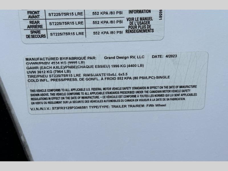 With any Reflection 150 Series fifth wheel by Grand Design, there is more available payload capacity and a broader range of half-ton trucks capable of towing this fifth wheel, and no slider hitch is needed thanks to the 90-degree turning radius which makes them short bed friendly and easier to tow. The mandatory Ultimate Power package provides a "One-Touch" automatic leveling system and a detachable power cord with LED light for easy setup, plus motion sensor pass-through lighting and entry lighting, and the Tire Linc TPMS will help you stay safe on the road. The interior offers residential luxury from the cabinetry and premium congoleum flooring, plus the booth dinette to the residential-style window treatment. Make your refined decision today!