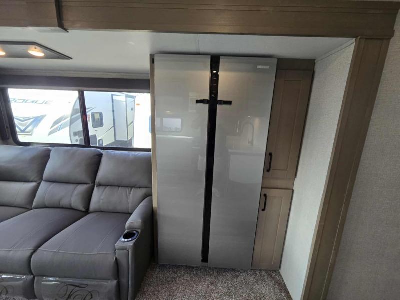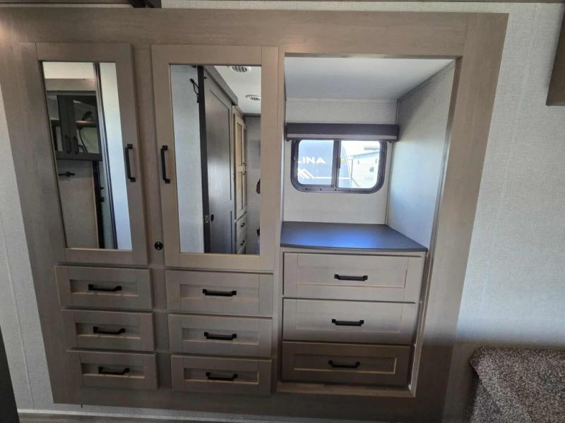 With any Reflection travel trailer by Grand Design, you will have a solar panel for off-grid camping and a 50 amp charge controller and inverter prep, a Universal All-In-One Docking Station, unobstructed pass-through storage, and nitrogen filled radial tires. Some other top features include the 30" stainless steel microwave, the maximum 7-foot headroom, and the ductless heating system with no vents in the floor to collect debris. Each is constructed of gel coat exterior sidewalls, residential 5" truss rafters, walk-on roof decking, a fiberglass and radiant foil roof and front cap insulation plus laminated aluminum framed side walls, roof and end walls in slide rooms. Choose luxury, value, and towability over all the others, take home a Reflection of your good taste!