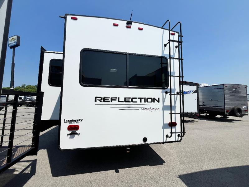 With any Reflection travel trailer by Grand Design, you will have a solar panel for off-grid camping and a 50 amp charge controller and inverter prep, a Universal All-In-One Docking Station, unobstructed pass-through storage, and nitrogen filled radial tires. Some other top features include the 30" stainless steel microwave, the maximum 7-foot headroom, and the ductless heating system with no vents in the floor to collect debris. Each is constructed of gel coat exterior sidewalls, residential 5" truss rafters, walk-on roof decking, a fiberglass and radiant foil roof and front cap insulation plus laminated aluminum framed side walls, roof and end walls in slide rooms. Choose luxury, value, and towability over all the others, take home a Reflection of your good taste!