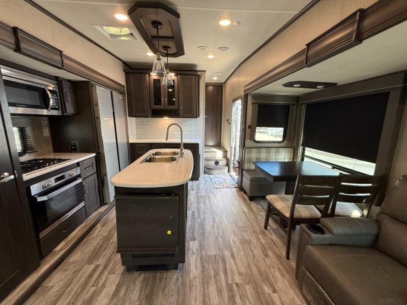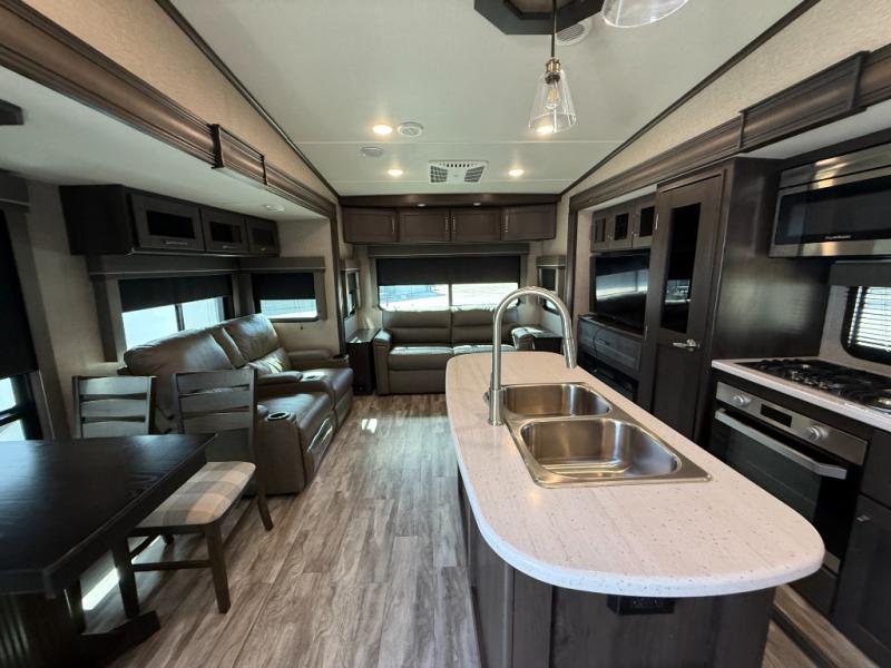 Each Reflection fifth wheel and travel trailer by Grand Design is packed with luxury features for an overall better camping experience! The MORryde 3000CRE suspension provides smooth towing to your destination and the durable construction materials mean you can enjoy your RV for years to come. These units include the Arctic 4-Seasons Protection Package that will extend your camping season thanks to the extreme temperature testing and maximum heating power. You will also appreciate the Solar Package that will allow you to do some off-grid camping and the Compass Connect system so you can control your RV's functions right from the palm of your hand. The interior of these travel trailers and fifth wheels are designed to make you feel at home with residential cabinetry, solid surface countertops, blackout roller shades, a spacious shower with a glass door, residential bedrooms, and the list goes on! Choose a Reflection today and start a new adventure tomorrow!