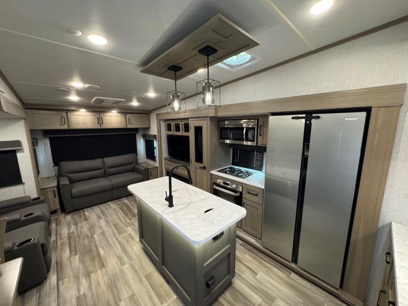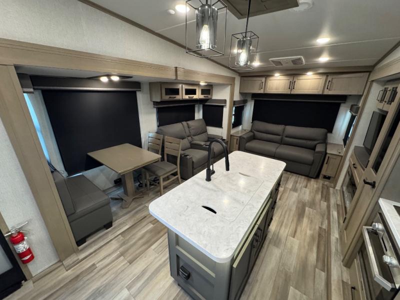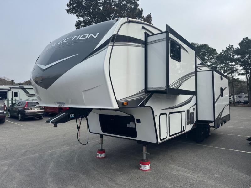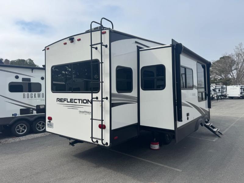 Each Reflection fifth wheel and travel trailer by Grand Design is packed with luxury features for an overall better camping experience! The MORryde 3000CRE suspension provides smooth towing to your destination and the durable construction materials mean you can enjoy your RV for years to come. These units include the Arctic 4-Seasons Protection Package that will extend your camping season thanks to the extreme temperature testing and maximum heating power. You will also appreciate the Solar Package that will allow you to do some off-grid camping and the Compass Connect system so you can control your RV's functions right from the palm of your hand. The interior of these travel trailers and fifth wheels are designed to make you feel at home with residential cabinetry, solid surface countertops, blackout roller shades, a spacious shower with a glass door, residential bedrooms, and the list goes on! Choose a Reflection today and start a new adventure tomorrow!