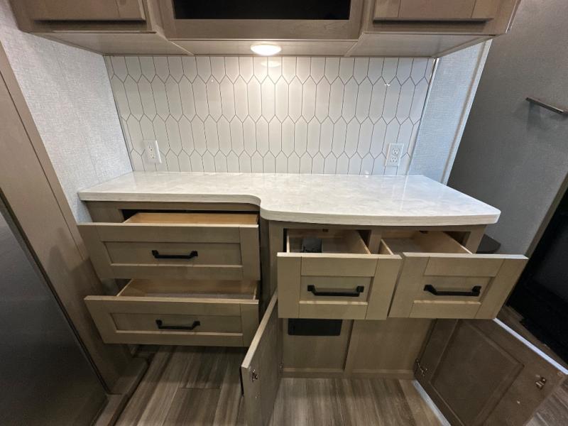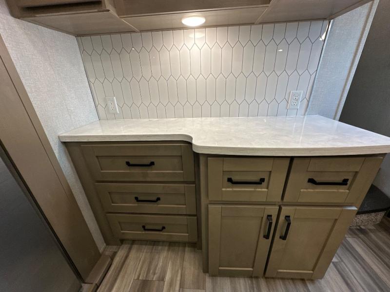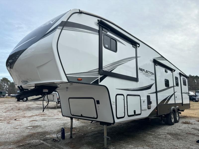 Each Reflection fifth wheel and travel trailer by Grand Design is packed with luxury features for an overall better camping experience! The MORryde 3000CRE suspension provides smooth towing to your destination and the durable construction materials mean you can enjoy your RV for years to come. These units include the Arctic 4-Seasons Protection Package that will extend your camping season thanks to the extreme temperature testing and maximum heating power. You will also appreciate the Solar Package that will allow you to do some off-grid camping and the Compass Connect system so you can control your RV's functions right from the palm of your hand. The interior of these travel trailers and fifth wheels are designed to make you feel at home with residential cabinetry, solid surface countertops, blackout roller shades, a spacious shower with a glass door, residential bedrooms, and the list goes on! Choose a Reflection today and start a new adventure tomorrow!