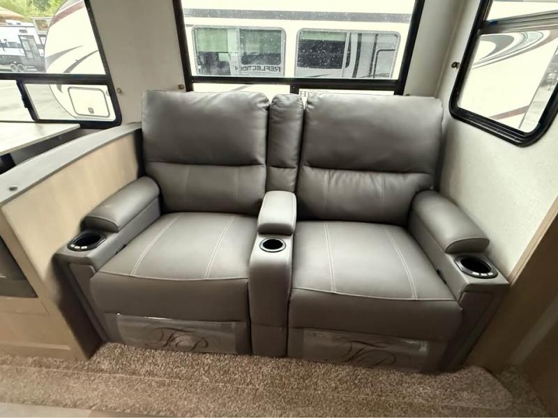 With any Reflection travel trailer by Grand Design, you will have a solar panel for off-grid camping and a 50 amp charge controller and inverter prep, a Universal All-In-One Docking Station, unobstructed pass-through storage, and nitrogen filled radial tires. Some other top features include the 30" stainless steel microwave, the maximum 7-foot headroom, and the ductless heating system with no vents in the floor to collect debris. Each is constructed of gel coat exterior sidewalls, residential 5" truss rafters, walk-on roof decking, a fiberglass and radiant foil roof and front cap insulation plus laminated aluminum framed side walls, roof and end walls in slide rooms. Choose luxury, value, and towability over all the others, take home a Reflection of your good taste!