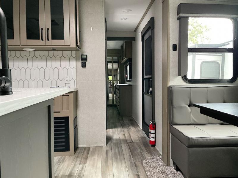 With any Reflection travel trailer by Grand Design, you will have a solar panel for off-grid camping and a 50 amp charge controller and inverter prep, a Universal All-In-One Docking Station, unobstructed pass-through storage, and nitrogen filled radial tires. Some other top features include the 30" stainless steel microwave, the maximum 7-foot headroom, and the ductless heating system with no vents in the floor to collect debris. Each is constructed of gel coat exterior sidewalls, residential 5" truss rafters, walk-on roof decking, a fiberglass and radiant foil roof and front cap insulation plus laminated aluminum framed side walls, roof and end walls in slide rooms. Choose luxury, value, and towability over all the others, take home a Reflection of your good taste!