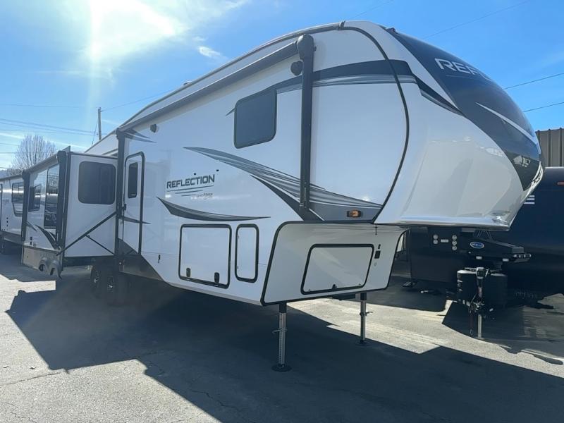 Each Reflection fifth wheel and travel trailer by Grand Design is packed with luxury features for an overall better camping experience! The MORryde 3000CRE suspension provides smooth towing to your destination and the durable construction materials mean you can enjoy your RV for years to come. These units include the Arctic 4-Seasons Protection Package that will extend your camping season thanks to the extreme temperature testing and maximum heating power. You will also appreciate the Solar Package that will allow you to do some off-grid camping and the Compass Connect system so you can control your RV's functions right from the palm of your hand. The interior of these travel trailers and fifth wheels are designed to make you feel at home with residential cabinetry, solid surface countertops, blackout roller shades, a spacious shower with a glass door, residential bedrooms, and the list goes on! Choose a Reflection today and start a new adventure tomorrow!